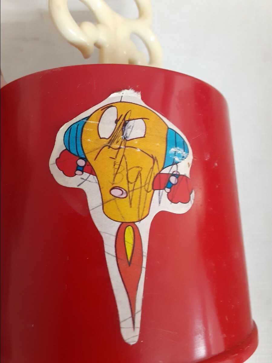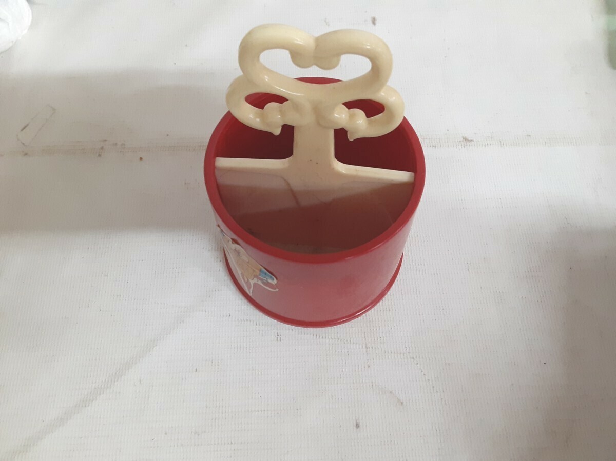 ☆昭和レトロ☆赤中古☆当時物☆シール☆おもちゃ☆使用感 汚れあり☆鉛筆立て