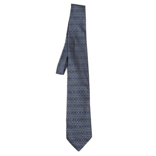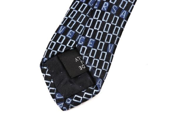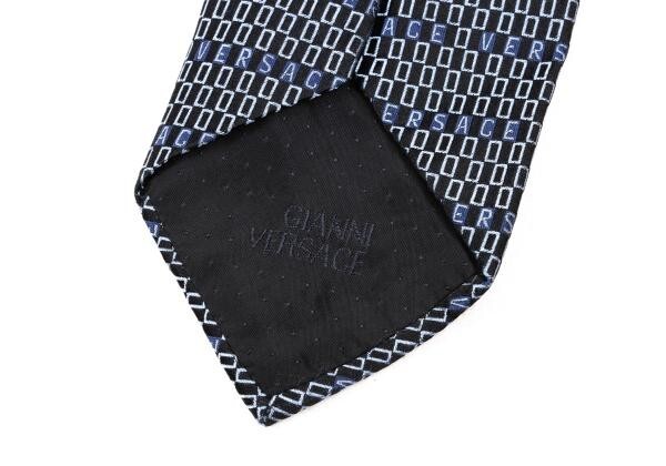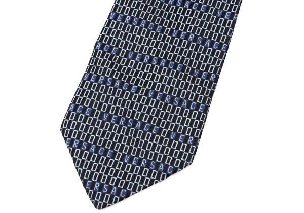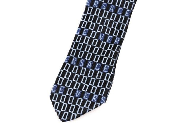 | ジャンニヴェルサーチGIANNI VERSACE シルクロゴボーダーネクタイ 青水色黒 |