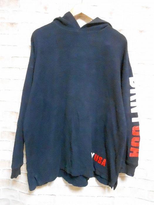 ★即決★【DKNY ダナキャラン】 90s KOREA製 袖ロゴ入り パイル地 パーカーsizeP