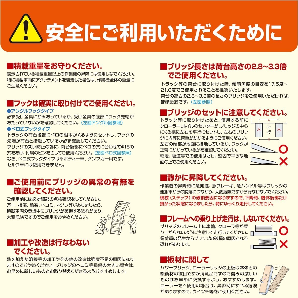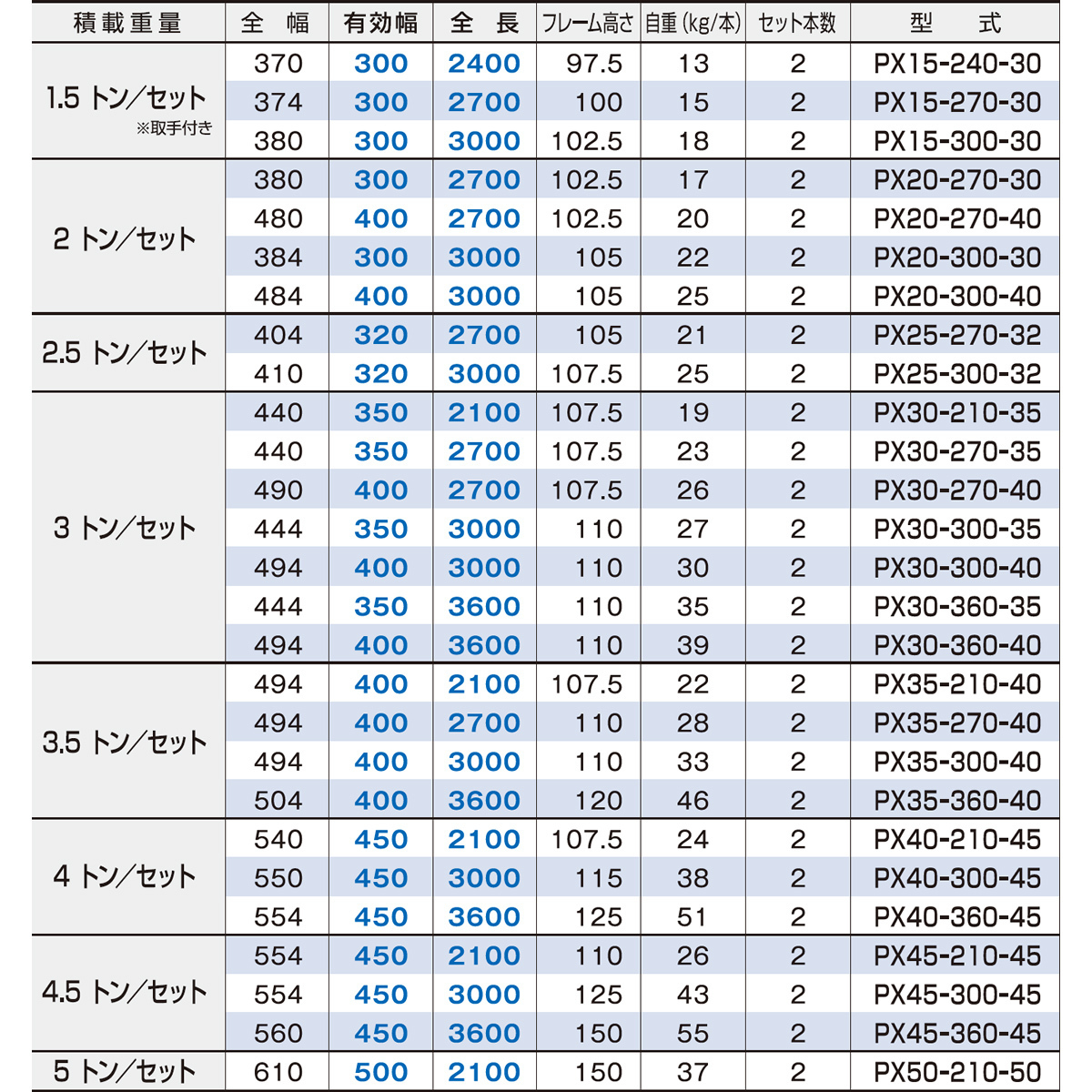 積載重量は1本あたり2トンです 日軽金アクト4トン(4t)ツメ式全長3600mm/有効幅450mm【PX40-360-45】2本組 自重51kg/1本 | ||