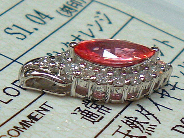 ●希少宝石 極上大粒パパラチァサファイア 大粒1.004ct&極上ダイヤモンド0.38ctを宝飾した、超高級ペンダントヘッドを特別大処分致します!