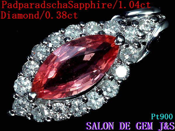 【新品】【ソーティング付】【超希少宝石】【大粒】【Pt900:高級天然パパラチァサファイア/高級天然ダイヤモンド ペンダント トップ】(S1.04ct/D 0.38ct)【エレガント】【赤字大処分!】【ハードケース付】【現品お届け】【送料無料】【ラッピング無料】