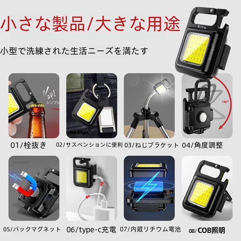 このキーチェーン懐中電灯は、広角ライトで強力な明るさを提供します。 COB LEDテクノロジーにより、小さな作業灯や非常灯として多目的に使えるツールです。