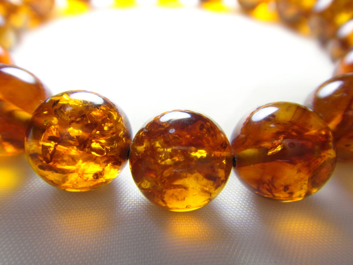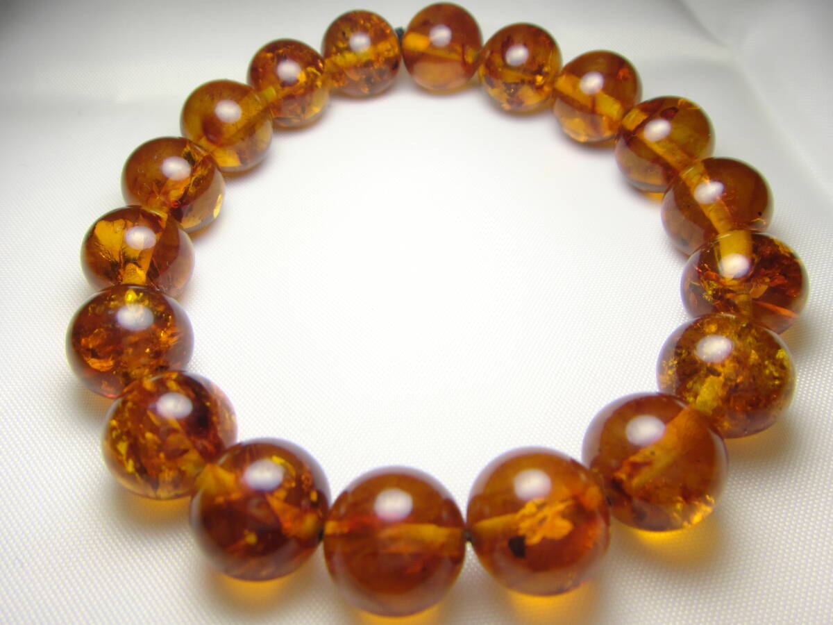 天然石 バルト海産 琥珀 アンバー 約10㎜玉 ブレスレット B668