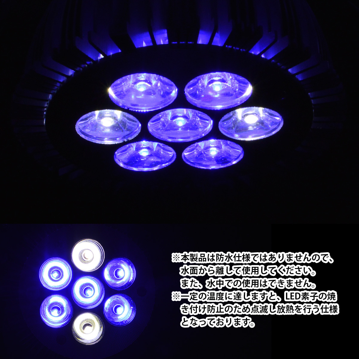 ※一定温度に達すると、LED素子の焼き付き防止のため、点滅し放熱を行う仕様です。