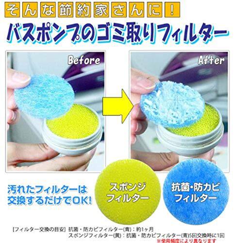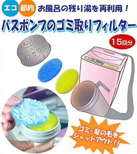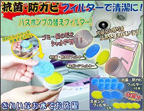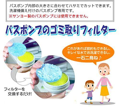 ・ 約直径5×厚さ0.8cm G-23-10・・PatternName:10回分・サイズ:スポンジ/約直径5×厚さ0.8cm、備長炭フィルター/約直径5×厚さ0.6cm。 素材:ウレタン、PET、アクリル、イミダゾール化合物 生産国:日本・バスポンプの替えフィルターです。お風呂の残り湯内のゴミ・髪の毛などが洗濯機に進入するのを防ぐ!バスポンプの汚れ・詰まりが取替えるだけで解消!さらに抗菌・防カビ配合素材で安心です。・フィルターはこまめに取替えられるよう「交換用抗菌防カビフィルター」10枚と「スポンジフィルター」5枚の10回分セット。バスポンプ内部の大きさに合わせてハサミでカットできます。・スポンジフィルター×5枚、交換用抗菌防カビフィルター10枚入り・日立 シャープ パナソニック 東芝 洗濯機対応確認済み。※サンヨー製(アクア)のバスポンプには適応しておりませんバスポンプの替えフィルターです。お風呂の残り湯内のゴミ・髪の毛などが洗濯機に進入するのを防ぐ!バスポンプの汚れ・詰まりが取替えるだけで解消!さらに抗菌・防カビ配合素材で安心です。