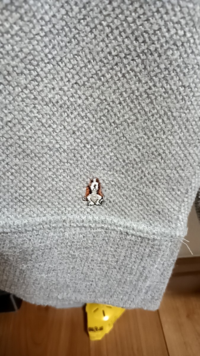 胸元にポケットも付いていて、ワンポイントでさりげなくかわいいワンちゃんも付いています。まだまだ着て頂けると思いますのでよろしくお願い致します。