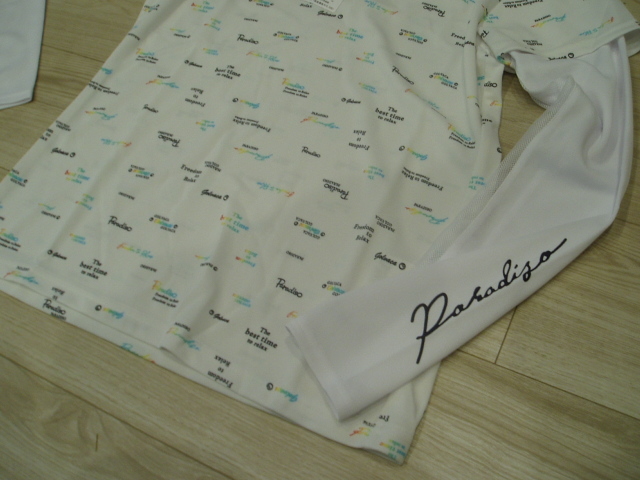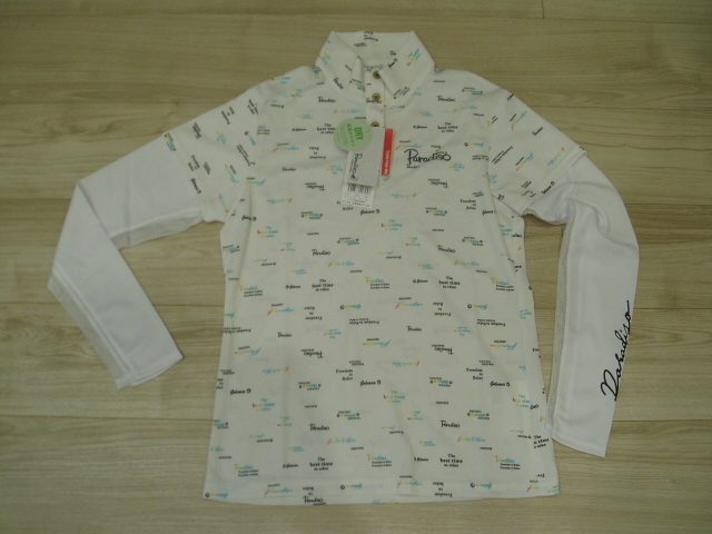 | Paradiso(パラディーゾ)レディース ゴルフシャツ フェイクレイヤード長袖シャツ4SY04F 新品です。税込み定価:11,000円 レディースのMサイズ 半袖シャツとアンダーウェアのフェイクレイヤード長袖シャツ。 袖部分にはメッシュ切り替えが入っているので蒸れにくく快適な着心地です。 ハイネック仕様なので首もとの日焼けを防いでくれる、紫外線が気になる女性に嬉しいアイテム。柄バリエーションが豊富なのも魅力です。 | |||