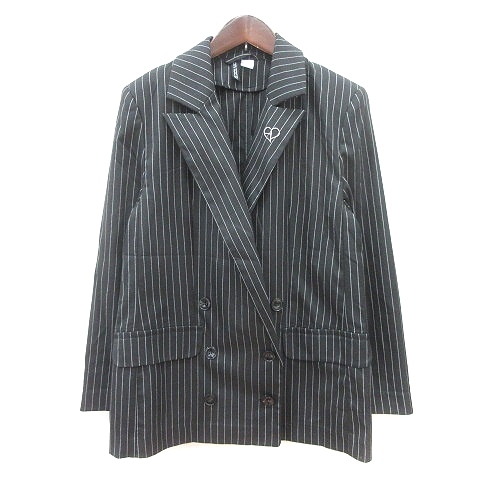 エイチ&エム H&M DIVIDED テーラードジャケット ダブル ストライプ XS 黒 ブラック /MN レディース