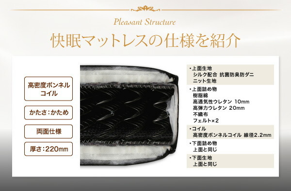 日本人技術者設計 超快眠 マットレス 抗菌防臭防ダニ ホテルプレミアム ボンネルコイル硬さ:かため シングル