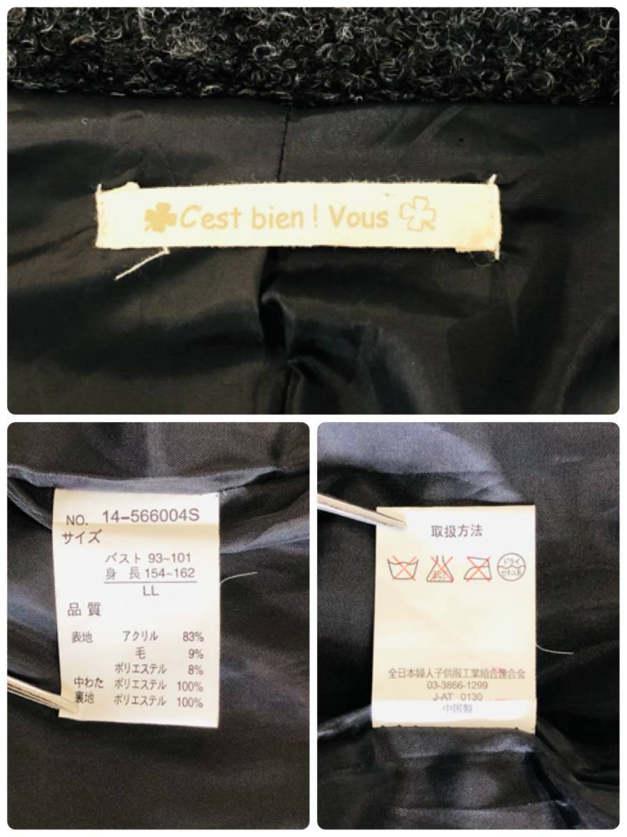 YAS0310 C'est bien ! Vous レディース アウター ボアジャケット 長袖 厚手 LL グレー灰 毛素材含 おしゃれ あたたか かわいい もこもこ 冬