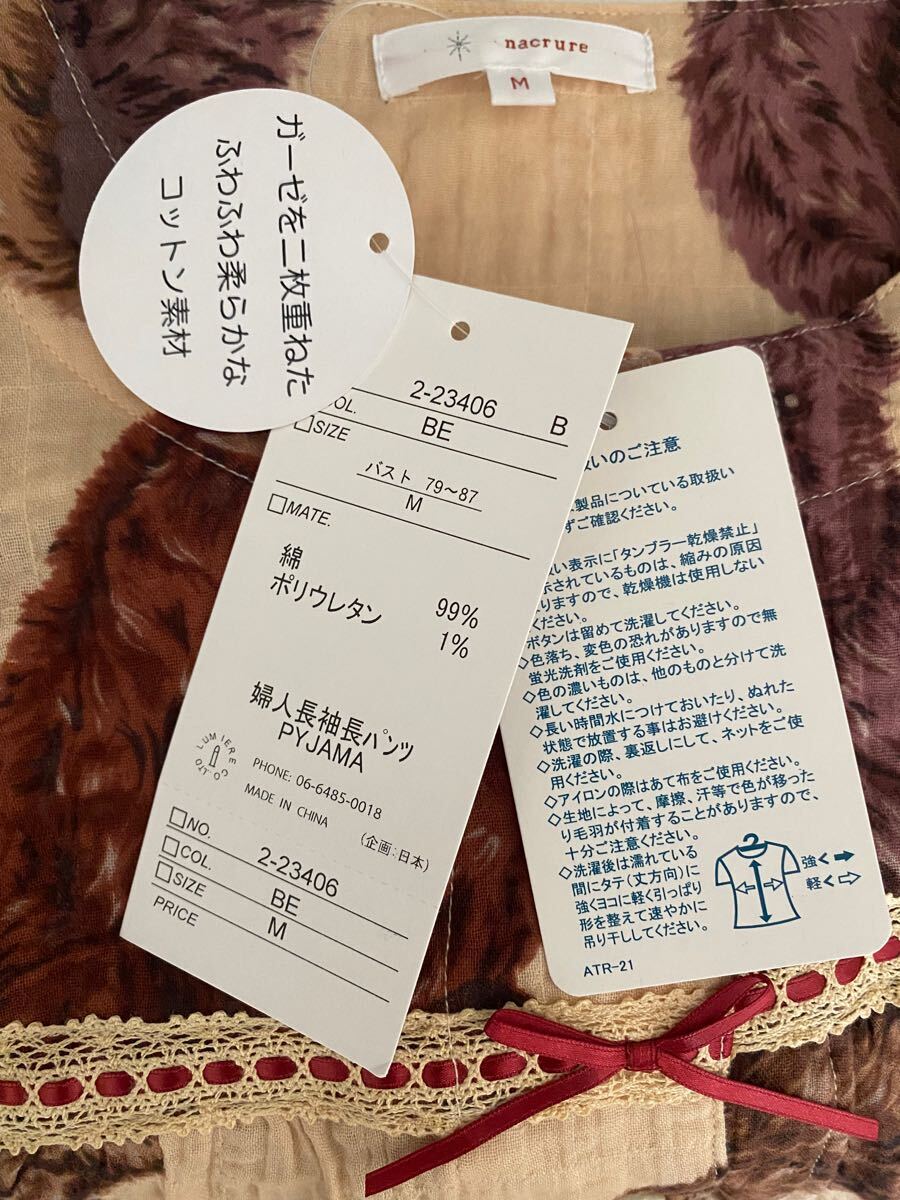 セレクトショップで購入したナクリュールnacrureの肌に優しいふわふわダブルガーゼのパジャマ上下セットMサイズです。