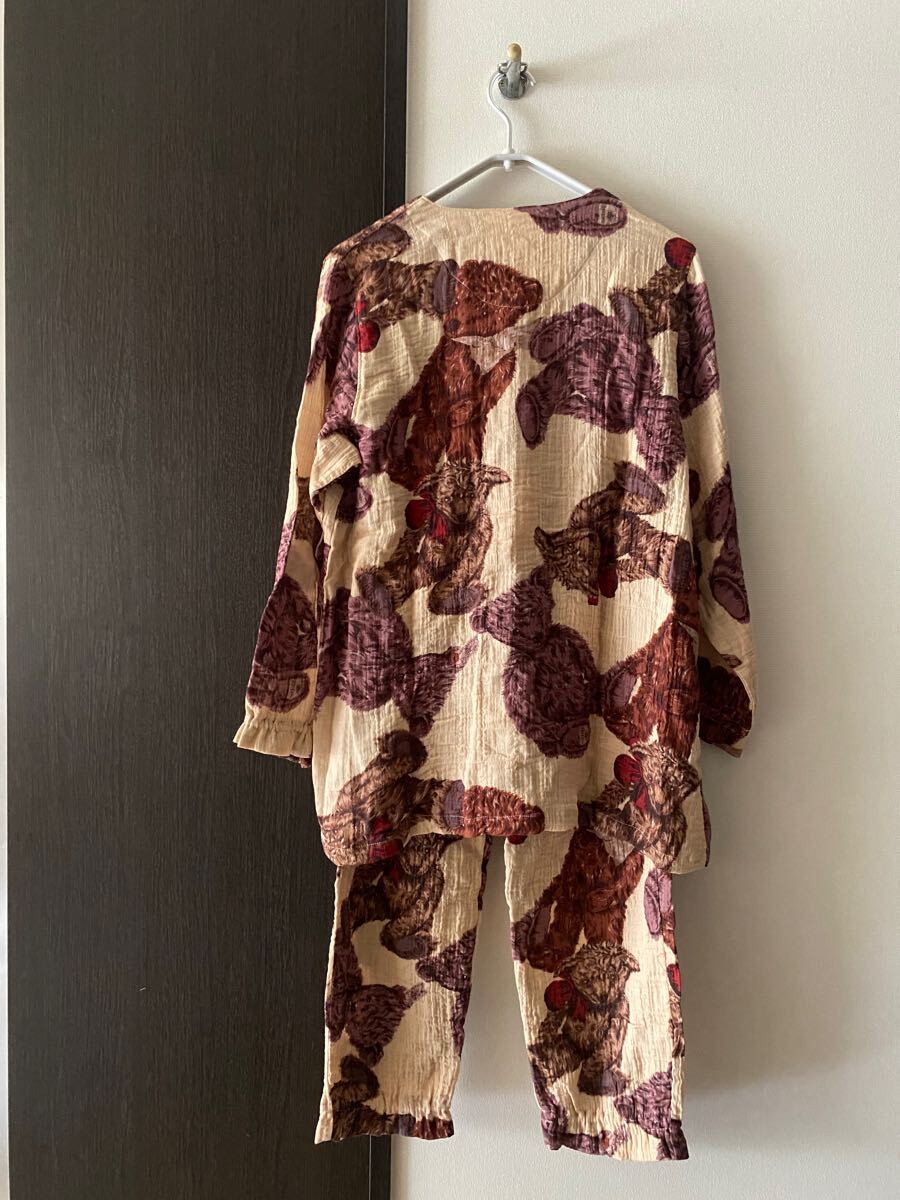 アンティークベアが可愛く寝巻きには見えないのでルームウェアにも。クーラー対策にピッタリな2重ガーゼです!