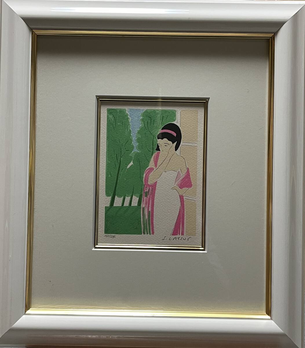 | ラシス作「7(ミニ)」です。 リトグラフで、エディション番号は150/298です。 サインがあります。 セルジュ・ラシス(1933-)はフランス出身の画家です。 パリの広告代理店"PUBLICITAS"に入社印刷物のイラストを担当する。 1981年以降フランス各地を始め、スイス、イタリア、スペイン、アメリカで個展を開催。 イメージサイズ:13.5×18㎝ 額サイズ: 40×45㎝ | |||