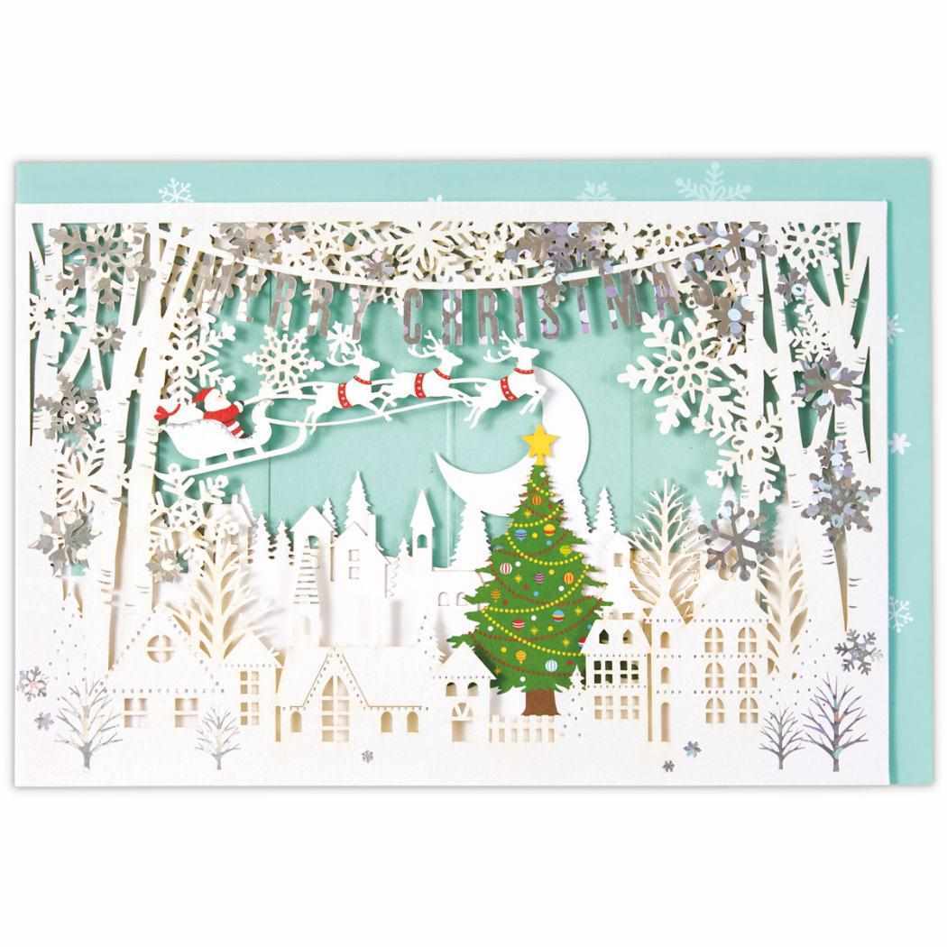 クリスマスカード レーザーカットカード 立体カード カーブレーザーホワイトタウン2 日本ホールマーク Xmas メッセージカード