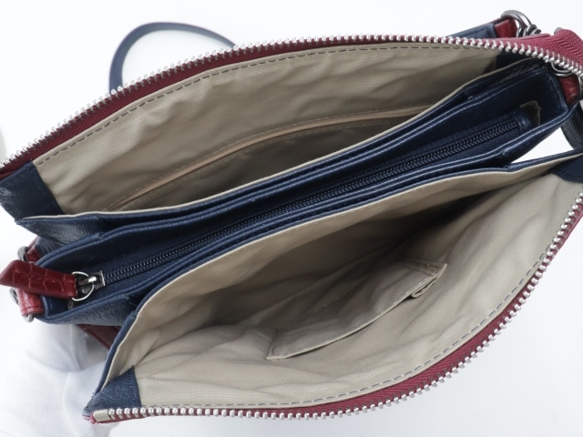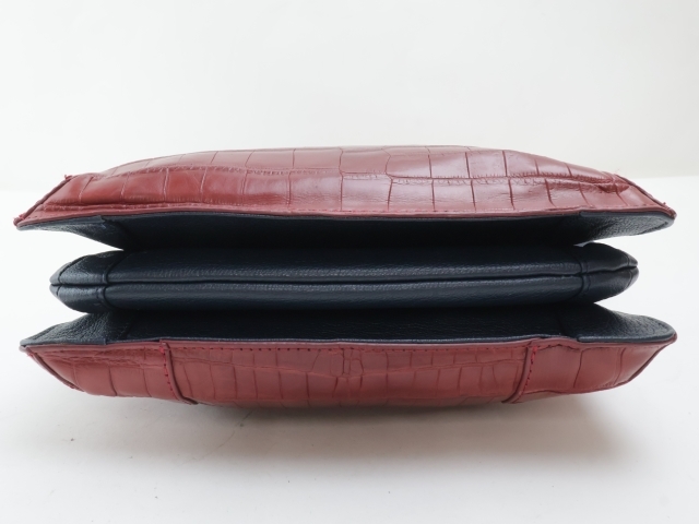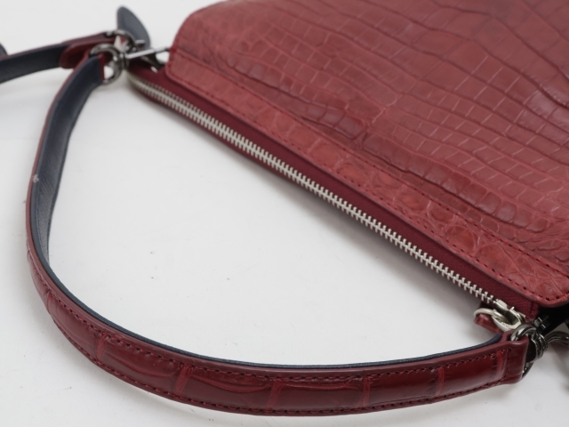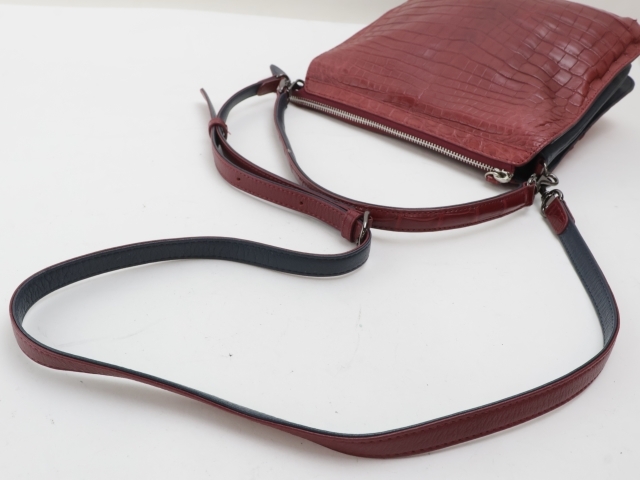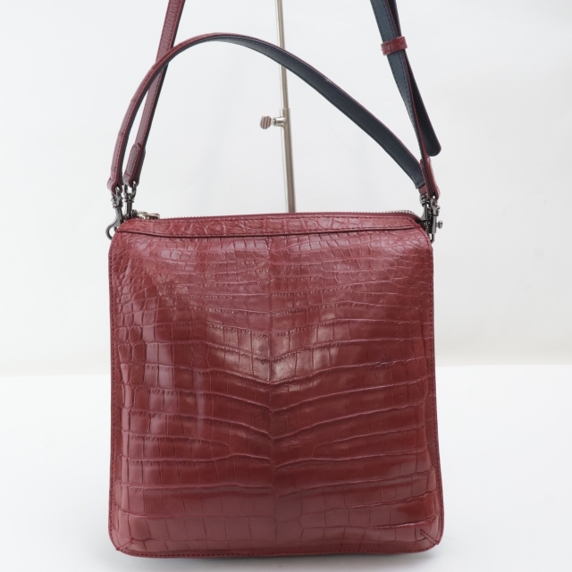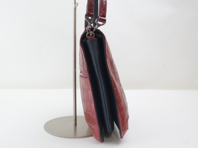 2411-81 マットクロコダイル製 ショルダーバッグ ハンドバッグ 2WAY 美品 レッド×ネイビー 上ZIP | |