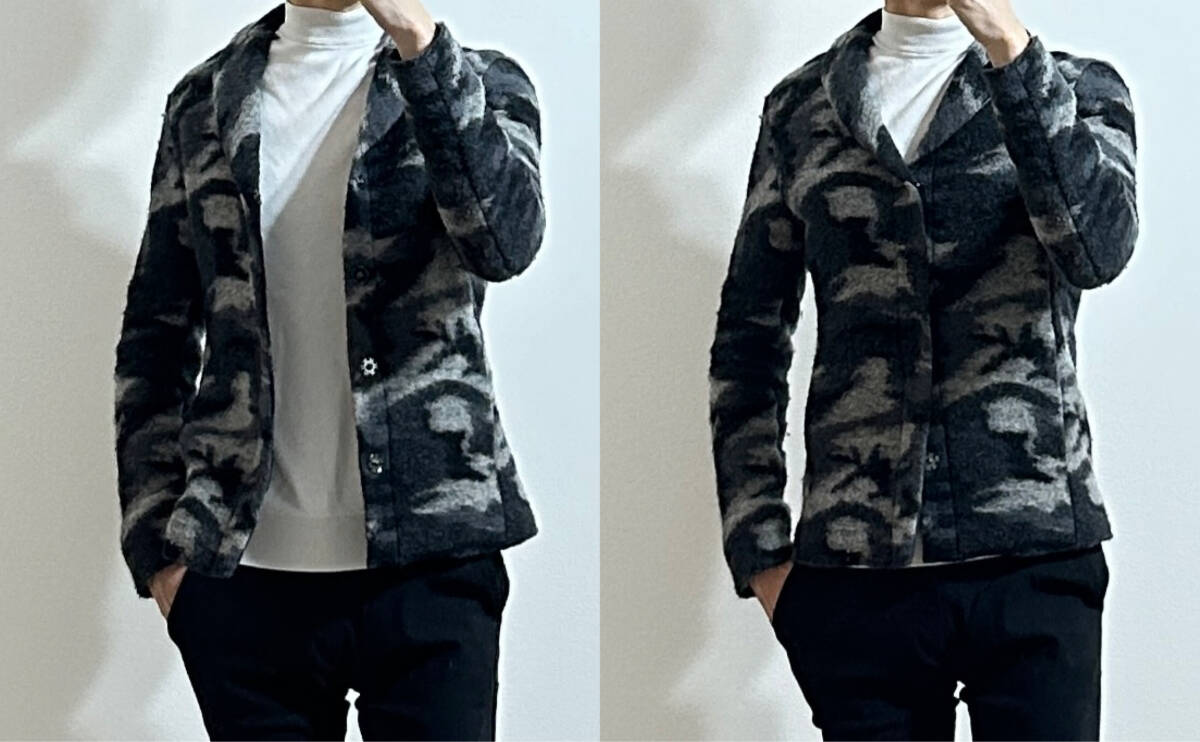 大き目のショールカラーが特徴的なswitch Camouflage JK。