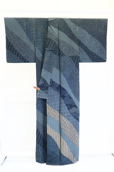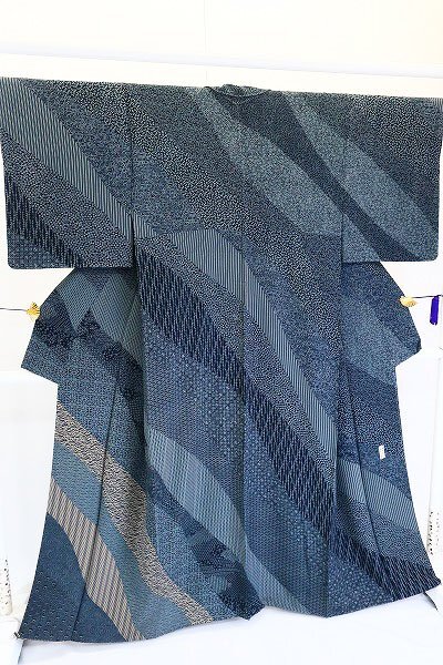 〔着物の色〕 濃藍色 〔八掛の色〕 グレー 〔着物の素材〕 正絹 |