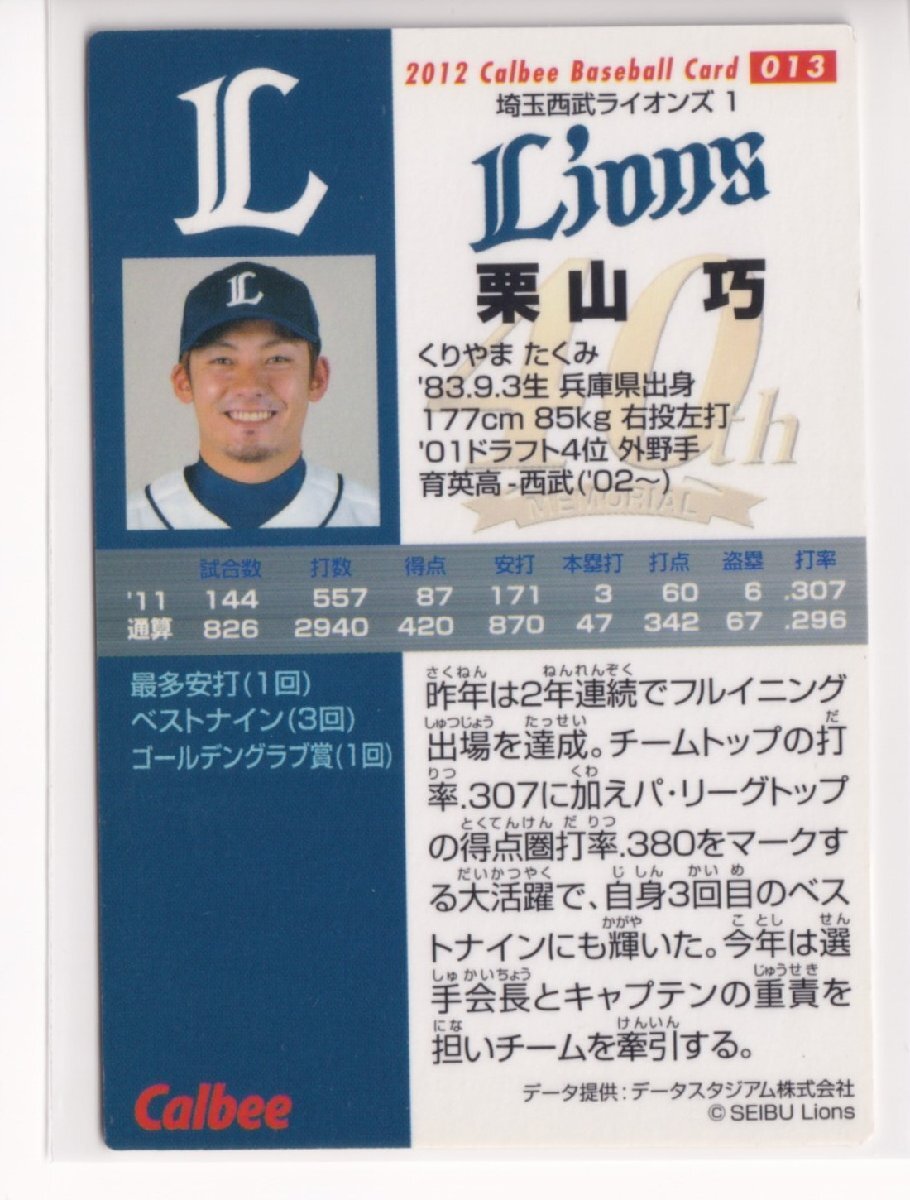 2012プロ野球チップス第1弾 13 栗山 巧(西武)