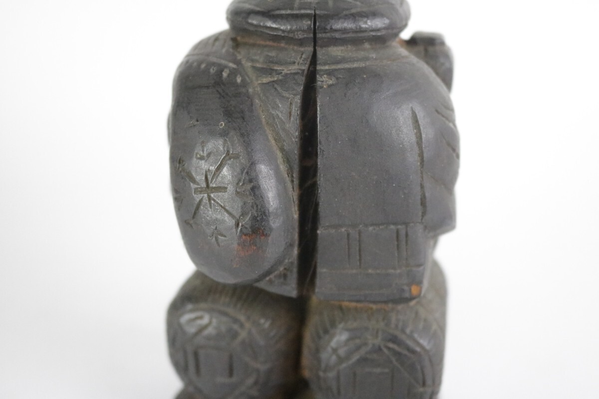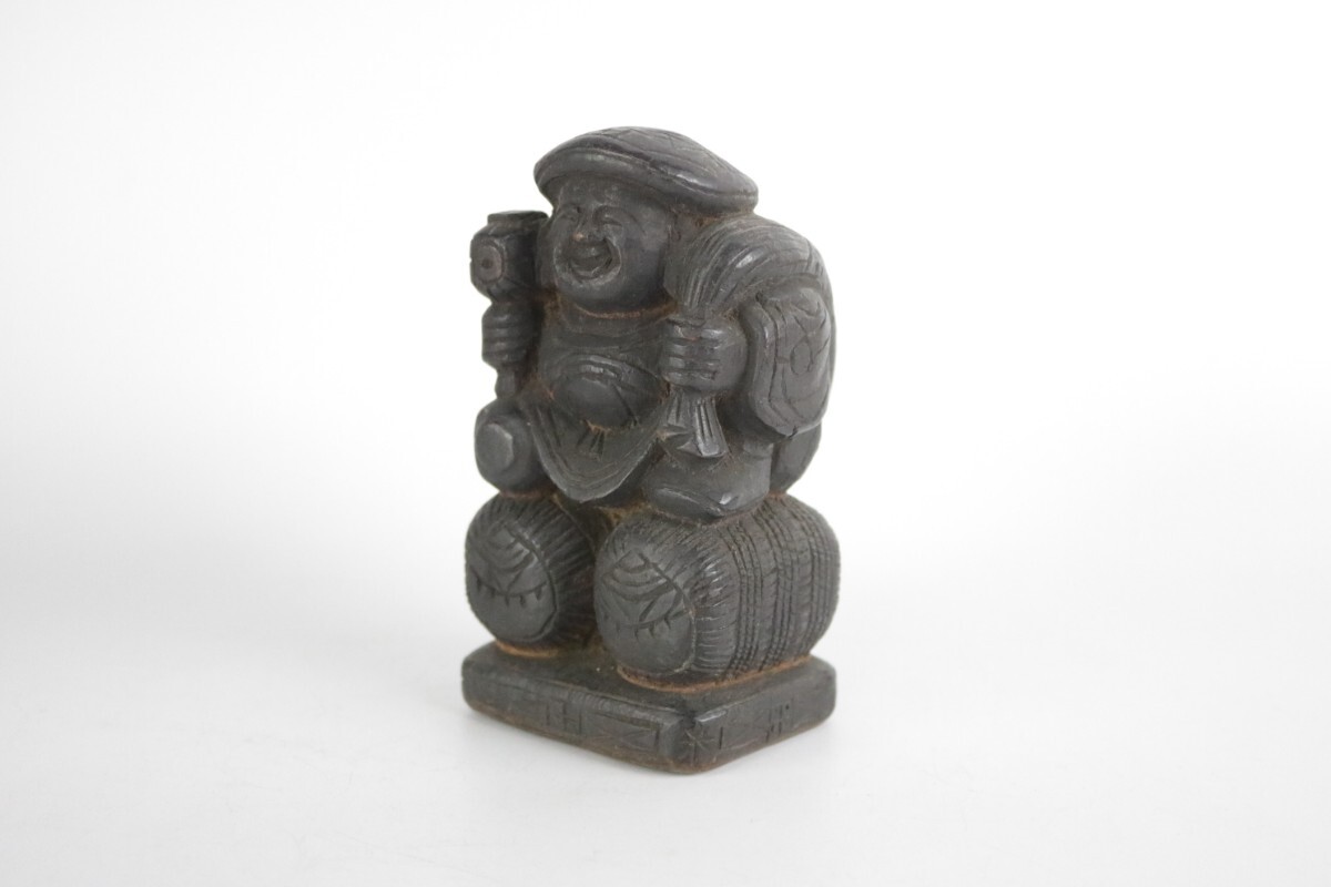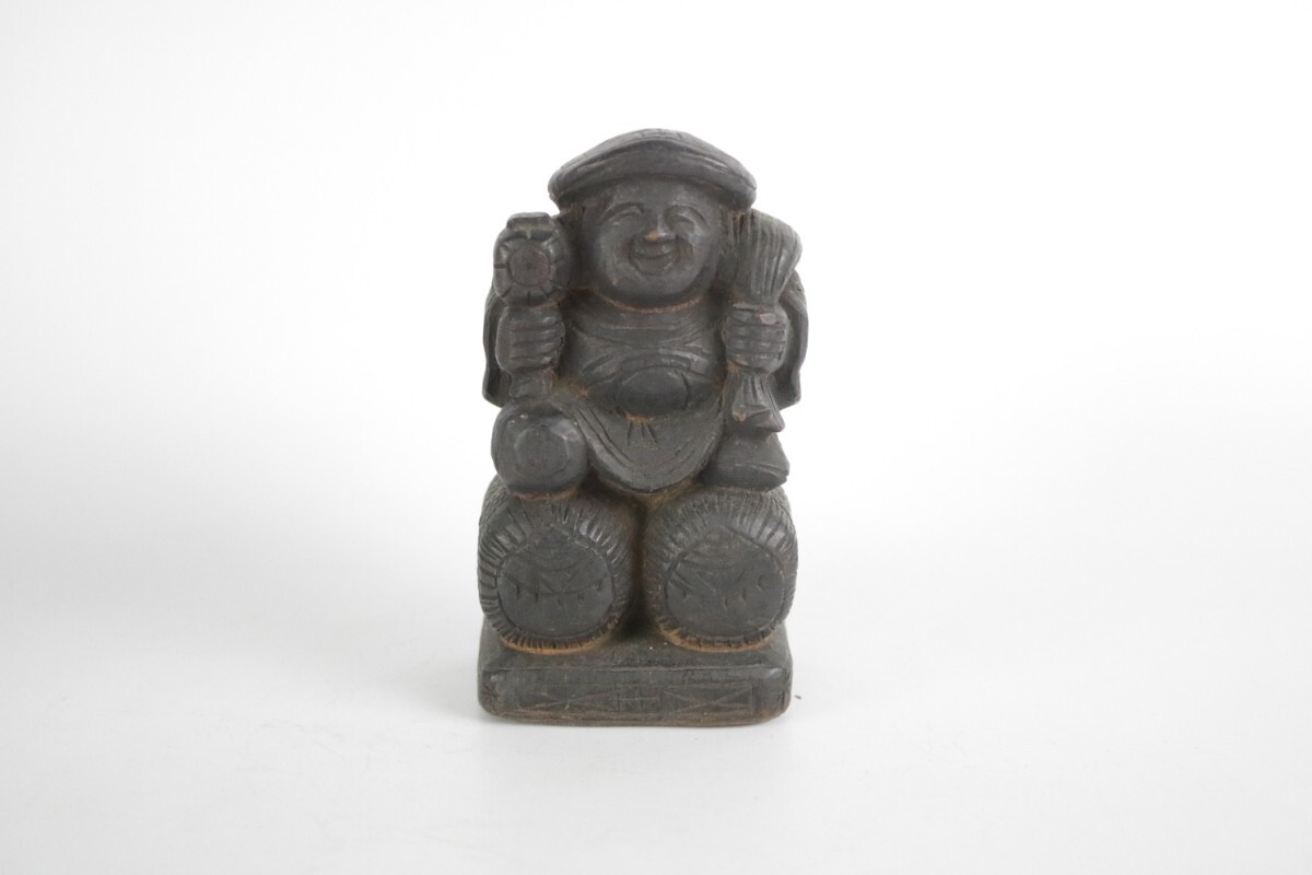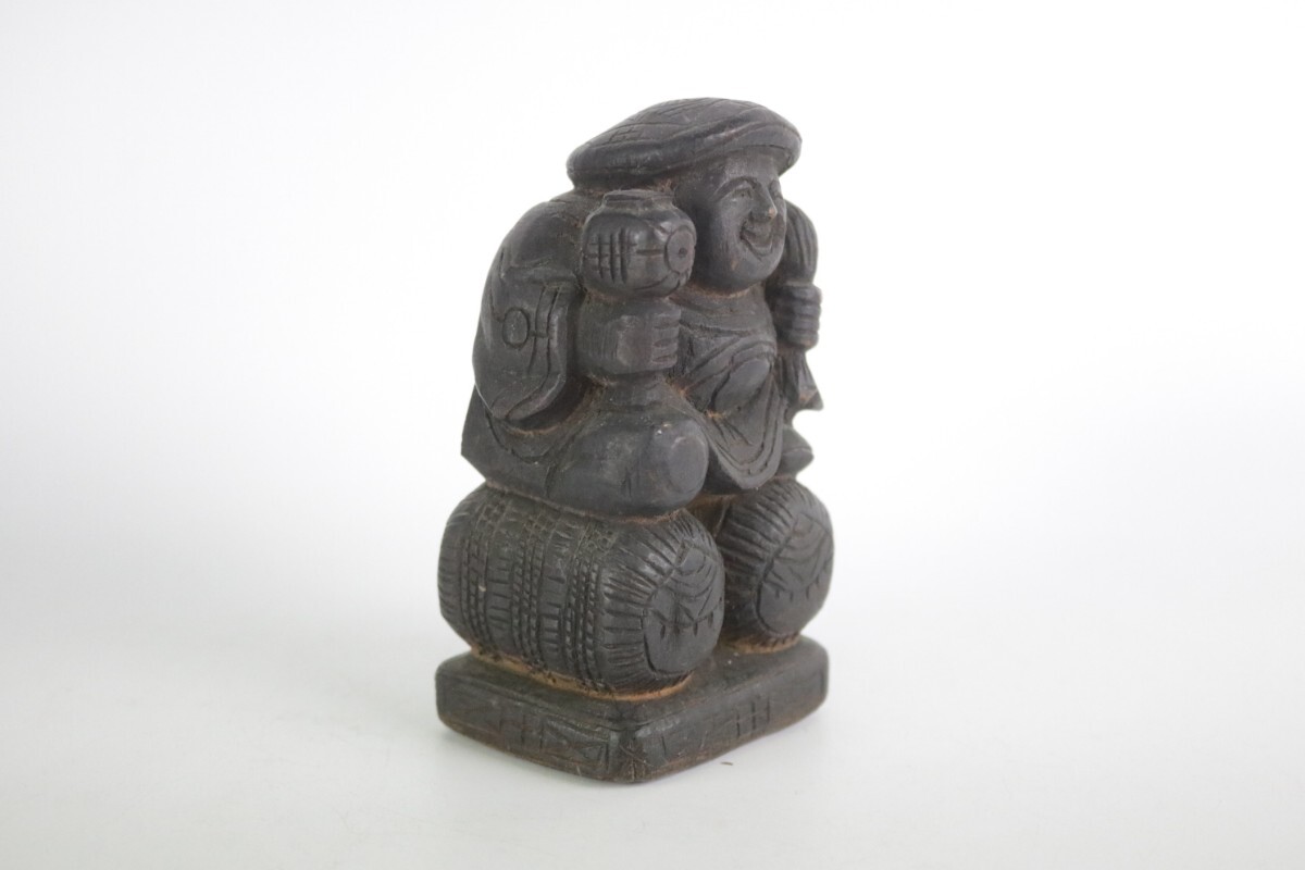 時代物 木彫り 大黒天 大黒様 七福神 縁起物 開運 商売繁盛 民藝 骨董 割れ有 中古 アンティーク ヴィンテージ