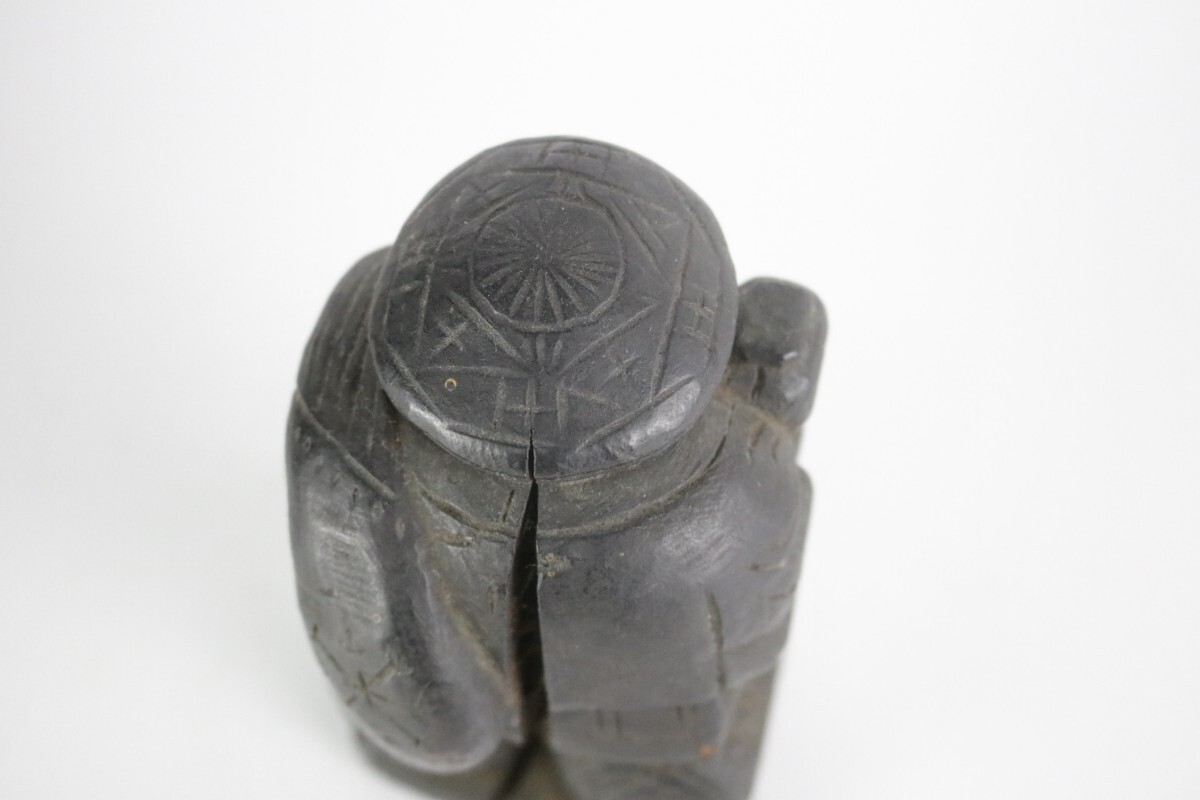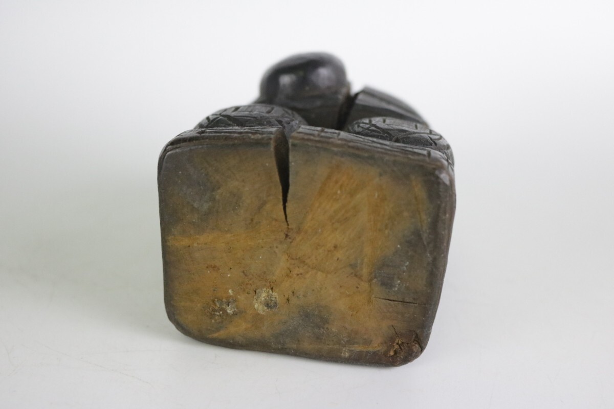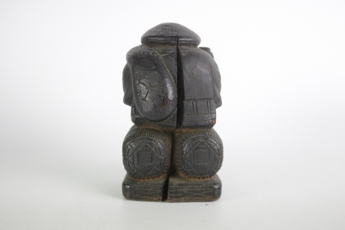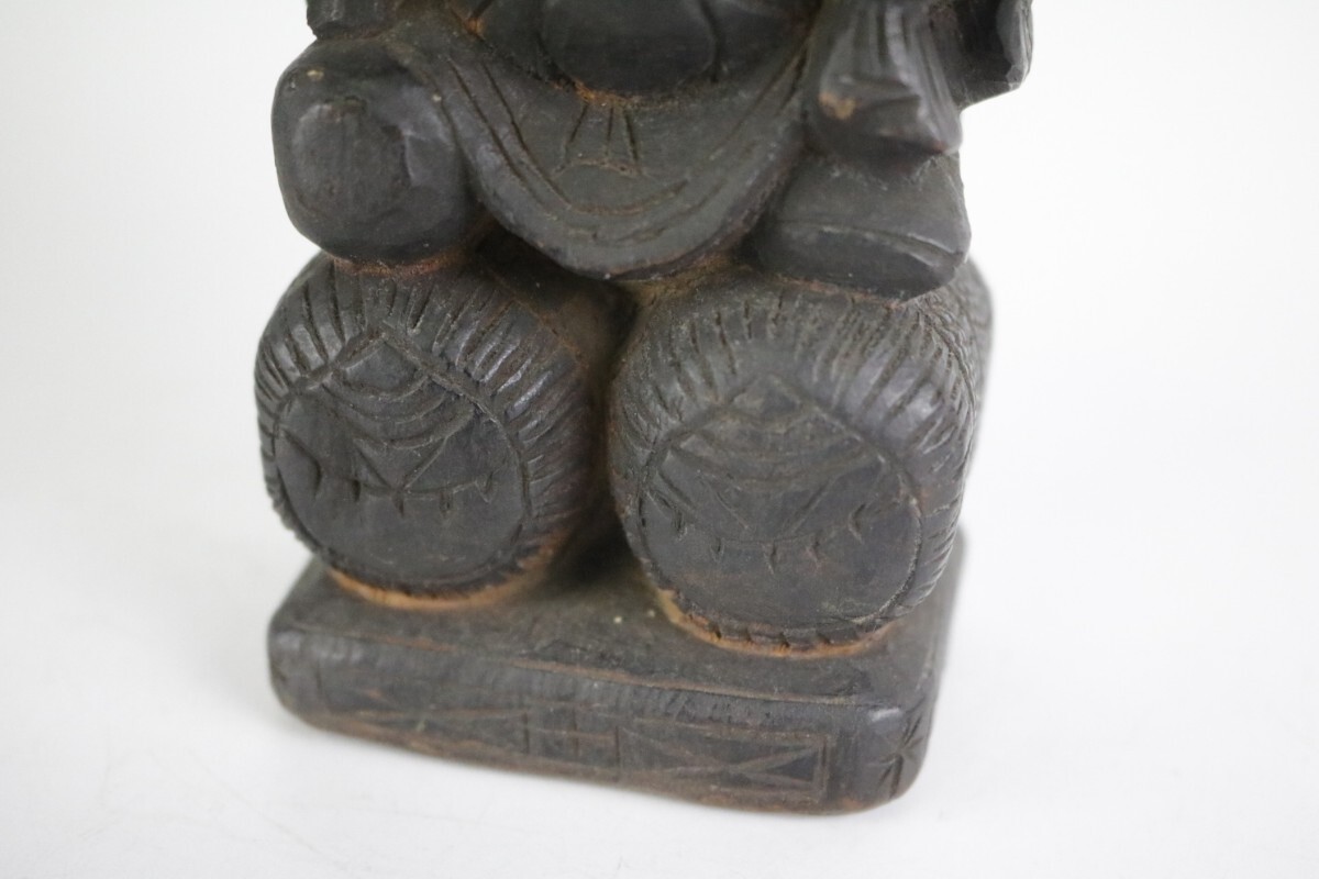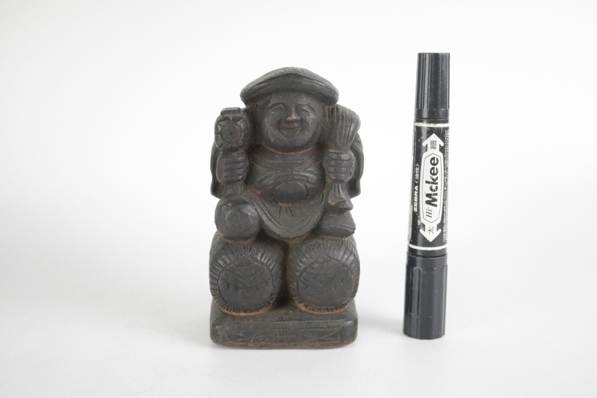 時代物 木彫り 大黒天 大黒様 七福神 縁起物 開運 商売繁盛 民藝 骨董 割れ有 中古 アンティーク ヴィンテージ