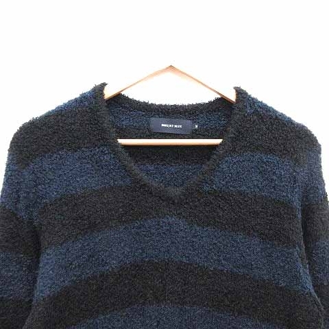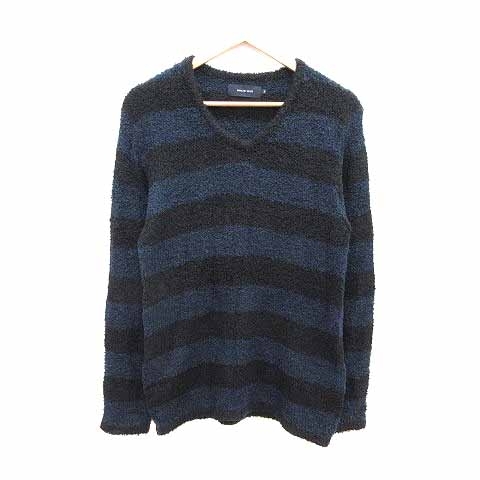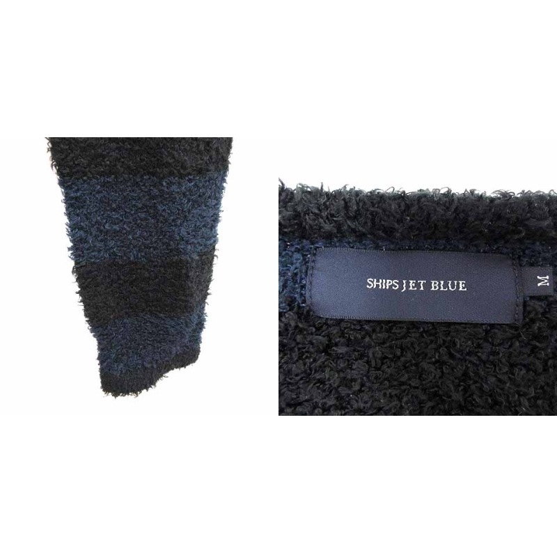 シップスジェットブルー SHIPS JET BLUE ニット セーター Vネック ボーダー 長袖 M 紺 ネイビー 黒 ブラック /YK メンズ