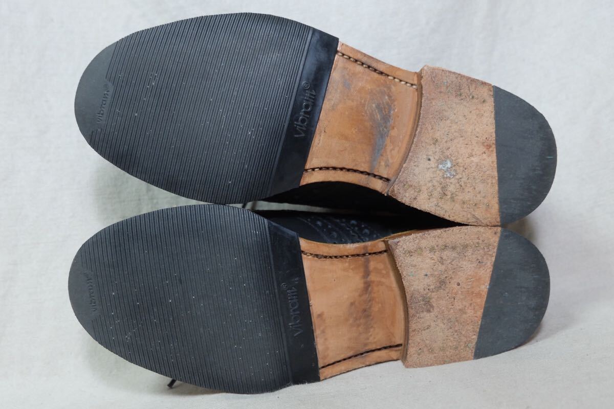 この度はアクセスありがとうございます。 ニューヨークのハイエンドストリートブランドMARK MACNAIRYがイギリスの歴史ある老舗シューズファクトリーSANDERSに製作依頼している革質、作り、デザインすべてが上質なウィングチップになります。永い時間をかけて作られたしなやかで上質なカーフレザーをタフで堅牢なGoodyearWelted製法で丁寧に仕上げた1足です。アッパーにはしなやかで艶のある最高級カーフレザーを使用、ライニング、インソール(中底)、ソールとほとんどがレザーで作られたイギリスの伝統とエレガントが詰まった仕上がりとなっております。レザソールにヴィンテージライクなクラシックなパターンに美しくエレガントな木型、そこにマクナイリーの程よいデザインのスパイスがハンドメイドによるクラシックシューズと融合した極上の1足です。 カルマンソロジー、エンダースキーマ、オールデン、クロケット&ジョーンズ、チャーチなど質実剛健な本格靴がお好きな方にオススメです。この機会にぜひご検討よろしくお願いします。 サイズ:UK5.5(23cm) 型:ウィングチップ アウトソール:25.8cm ソール最大幅:10.3cm ソール:レザーソール カラー:ブラック 製産国:イギリス 素材:カーフレザー ライニング:レザーライニング 状態:10段階中【8.5】 アッパー:まだまだ永くご使用いただける美品です。 ソール:まだまだ永くご使用いただける美品です。 付属品:なし 基本的にはノークレームノーリターンなのでご不明点等あればお気軽にご質問、ご連絡ください。 注意事項 確認はしておりますが、中古品のため小さなキズ、汚れ等を見落とす場合があるので神経質な方はご入札をお控えください。 サイズはあくまで標準的なサイズ感なので、実寸やメーカーサイズをご参考頂きますようお願いいたします。 三日以内にご連絡いただけない場合、評価の末再出品させていただきますのでご了承ください。 | |||