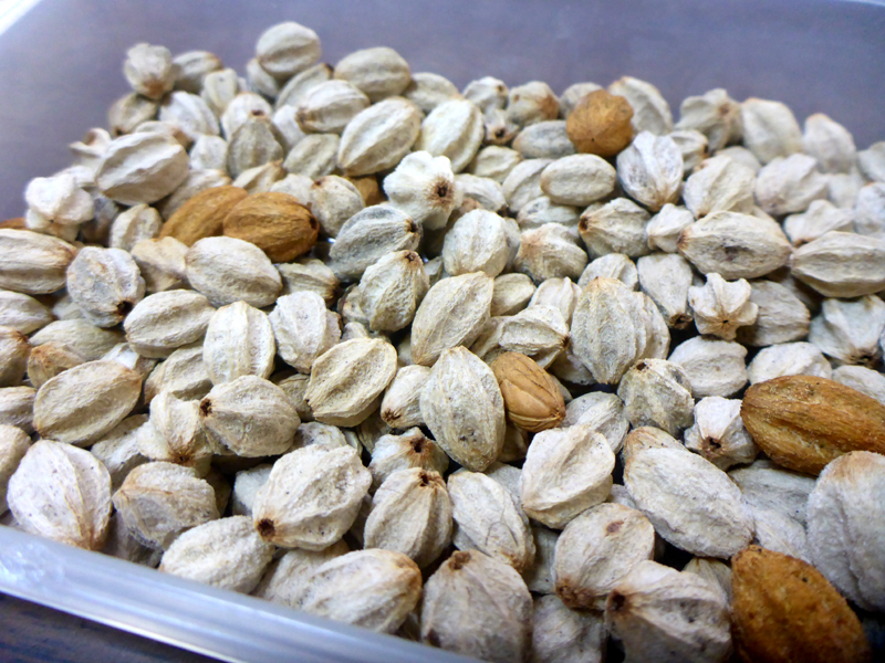 大きさや色にバラつきがありますが、平均直径1㎝×0.5㎜のラグビーボール形に星形の切り込みが入っています