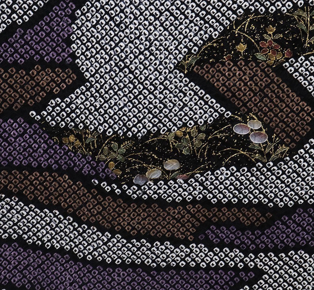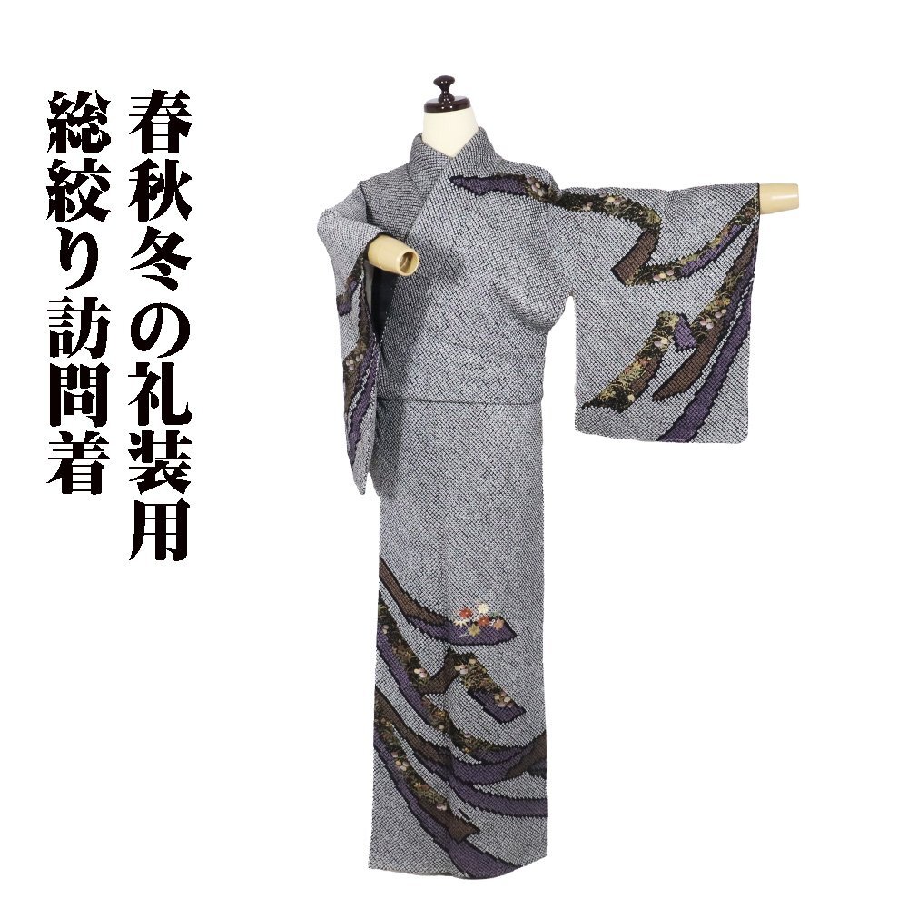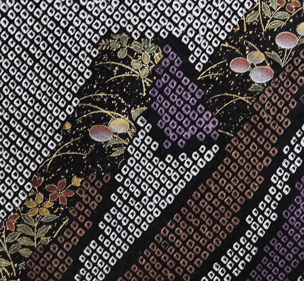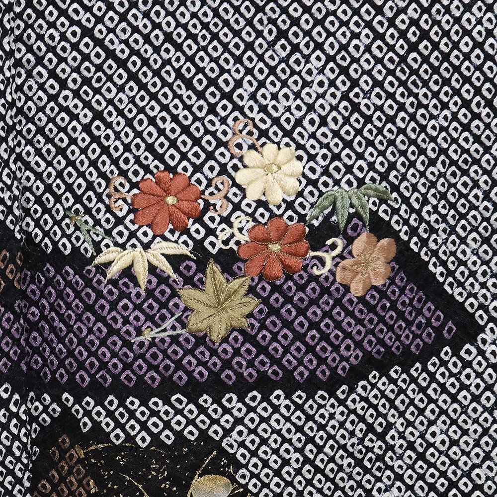 | 総絞り訪問着 袷 丹後縮緬地 黒・白・紫・赤地 刺繍・松竹梅(松葉・笹・梅)・紅葉・菊 金彩・万寿菊・南天 160 広襟 仕付け付き |