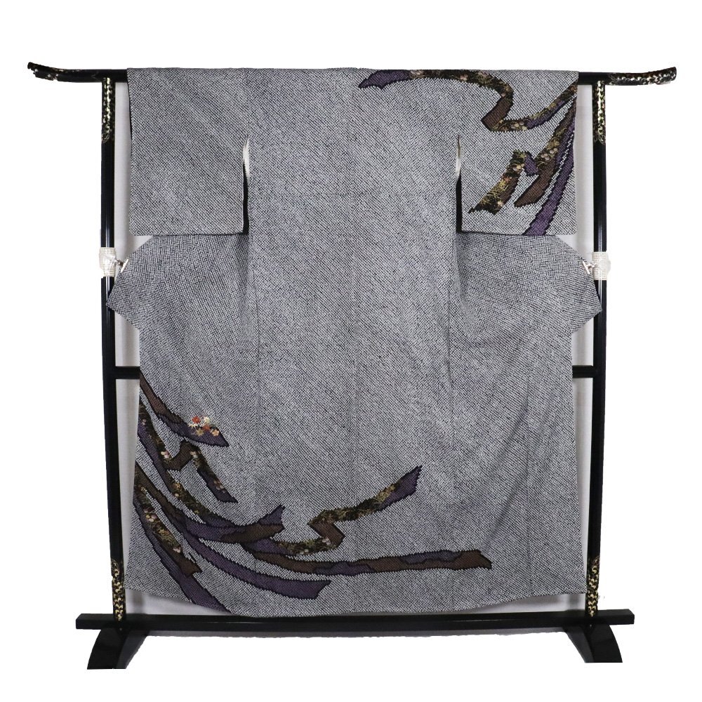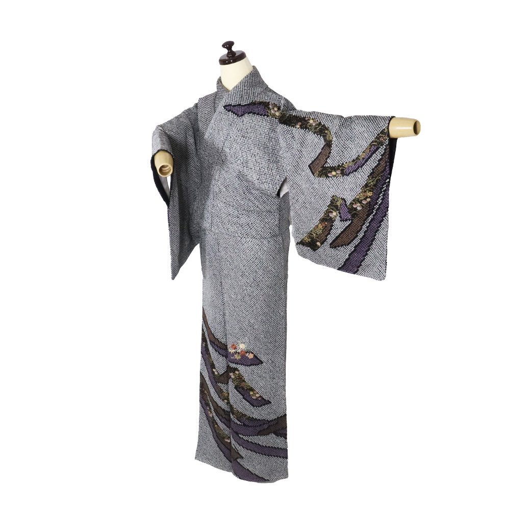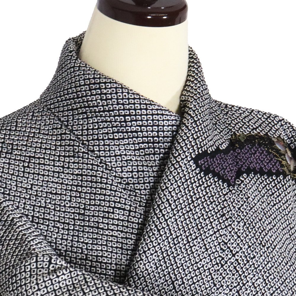 | 総絞り訪問着 袷 丹後縮緬地 黒・白・紫・赤地 刺繍・松竹梅(松葉・笹・梅)・紅葉・菊 金彩・万寿菊・南天 160 広襟 仕付け付き |