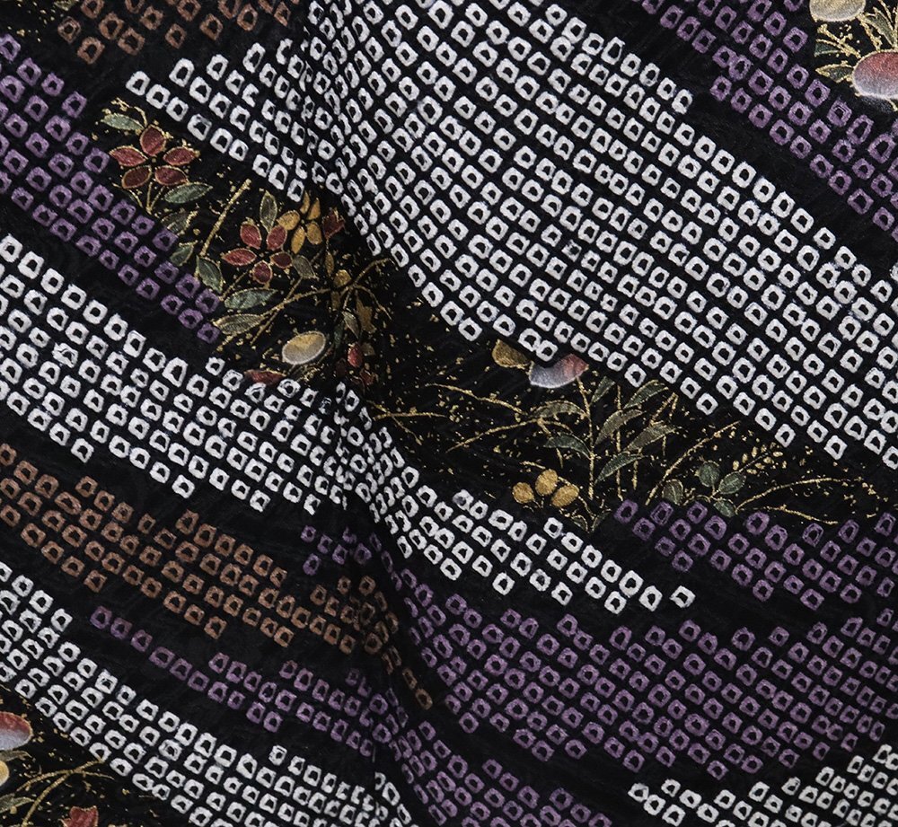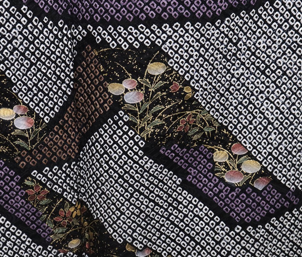 総絞り訪問着 袷 丹後縮緬地 黒・白・紫・赤地 刺繍・松竹梅(松葉・笹・梅)・紅葉・菊 金彩・万寿菊・南天 (写真では上手く色が出ない場合があります。ご了承下さい) |