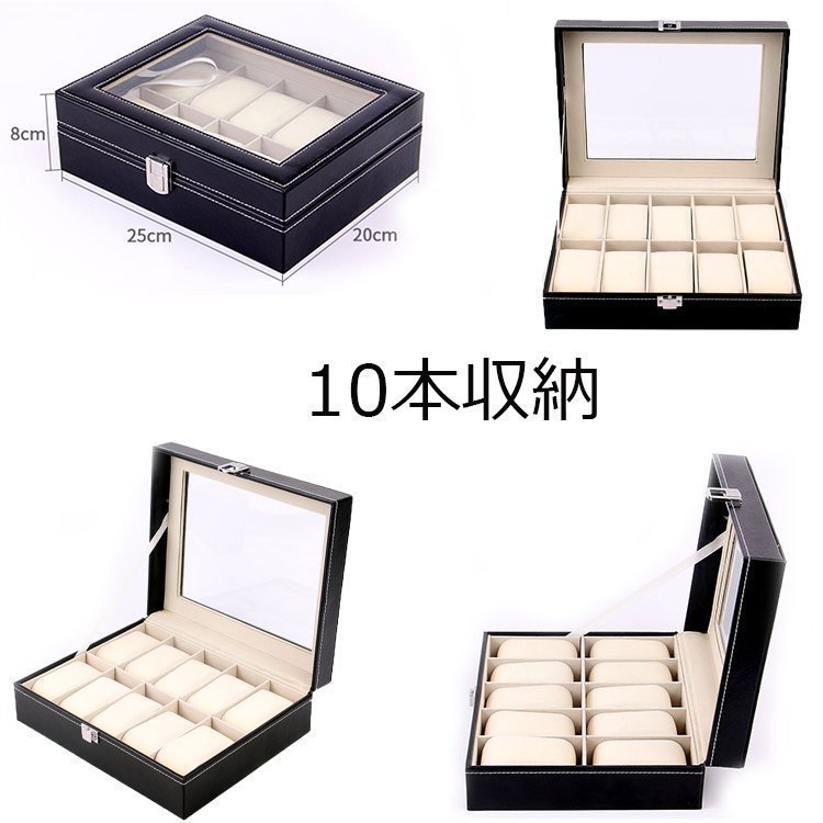 腕時計 収納ケース PU革制 レザー 展示 10本用 ウォッチケース ボックス ブラック MAY665
