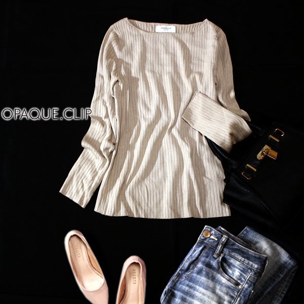 ☆ 美品 OPAQUE.CLIP オぺークドットクリップ 綺麗め ウール混紡 レーヨンストレッチ リブニット プルオーバー 36号 S 春 秋 冬 合服 23B10