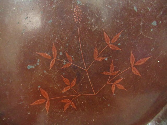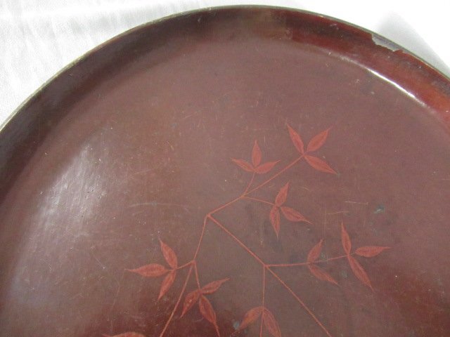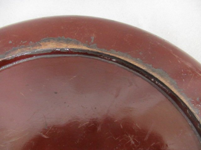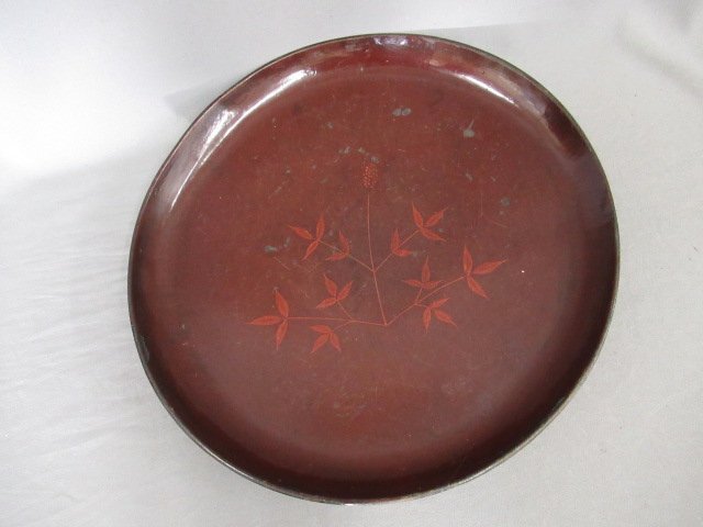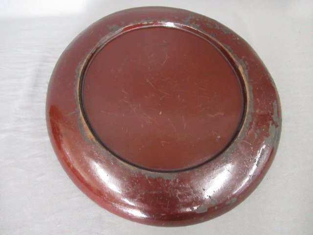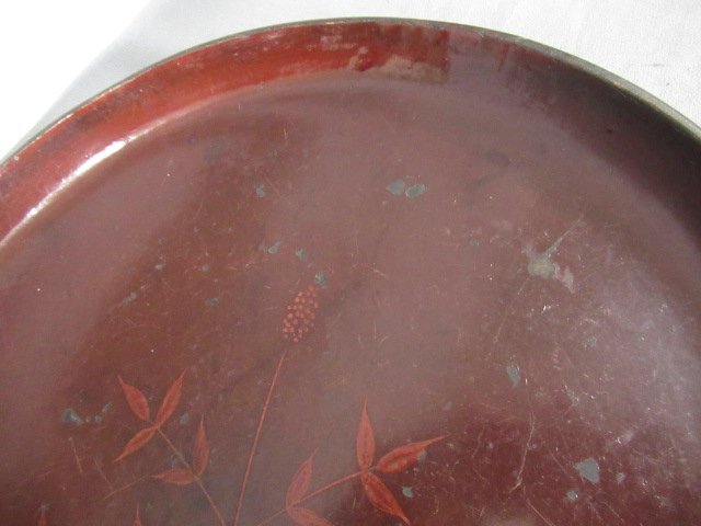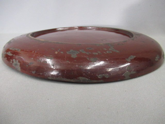 ◆ご注意事項 ・ 当方は「オークション ストア」です。 「オークション ストア」では、「かんたん決済」は使えません。 「オーダーフォーム」のご利用お願い致します。 オークション終了後、Yahoo!オークションより、自動落札通知メールが届きます。 そこにある出品者連落葉フォームへ、お客様の情報を漏れなくご入力して下さい。 ・ 配達日時の希望/評価の不要 等、ご希望が御座いましたら 「備考欄」にご記載して下さい。 ・ 落札者様氏名・お届け先氏名と 入金者様氏名が異なる場合は「備考欄」にご記入下さい。 ご連絡のない場合確認に手間がかかり発送が遅れる場合が有りますのでご了承ください。 ■商品説明 ■寸法:高・35~40x径・350~370mm。 多少の誤差は了承ください。 ■発送寸法:100サイズ(送料ゆうパック元払)。 ■状態:時代による漆剥がれ・汚れ等多く見られますが、 やや変形していますが、盆自体はシッカリとしています。 時代物としてそれなりの経年感・使用感等と共にご承知下さい。 品物の状態(傷み・変色等)に関しましては、細心の注意を払いますが当方の気付かない点や 説明の及ばない場合もあります。その辺り全てご了承の上、入札よろしくお願いします。 とにかく状態に関しましては、全て画像にて入札者の方で判断して下さい。 古美術品等にご理解のある方の入札をお待ちします。 返品・キャンセルについては固くお断り申し上げております。 画像と説明文で理解・納得の上入札して下さい。 | ||||||||||||||||||||||||||||||||||||||||||||||||||||||||