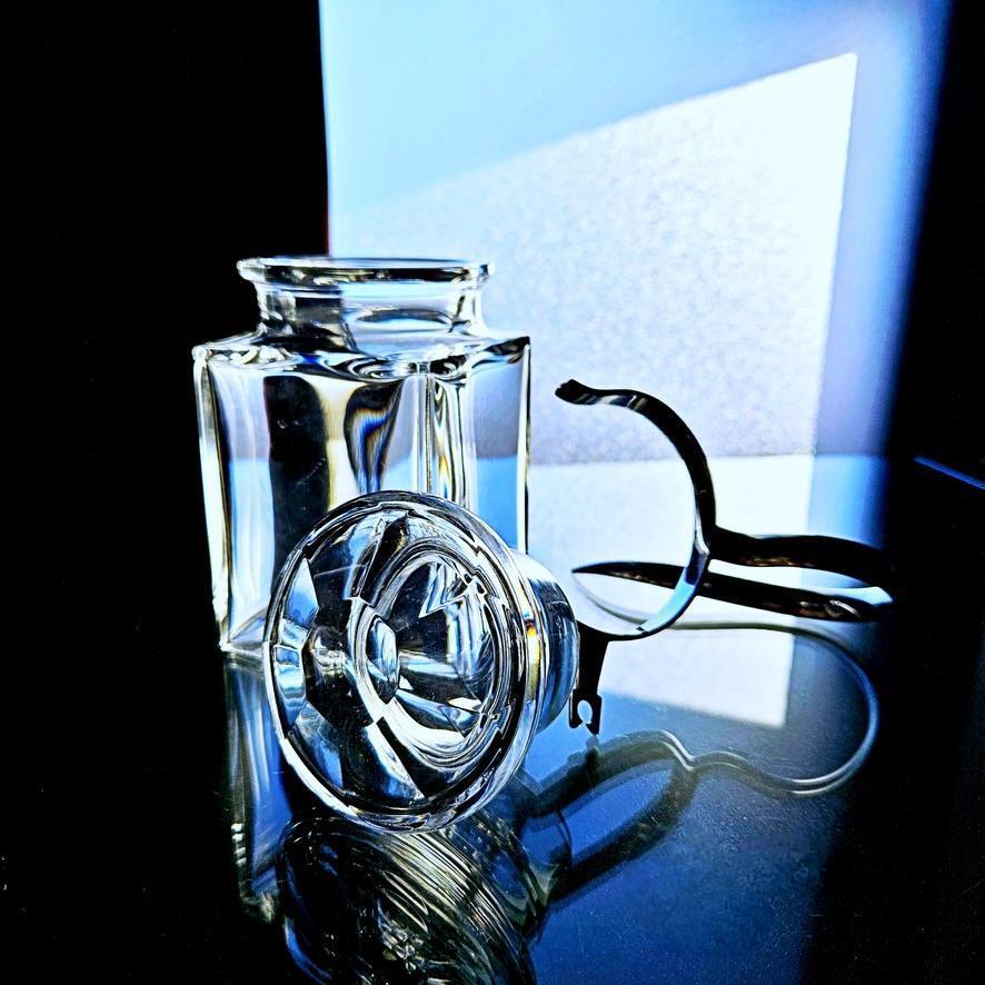 輝くオールドバカラBaccarat 銀取手のクッキージャー 蓋物 小物入れ ガラスポット アクセサリーポットお菓子入れ フランスアンティーク