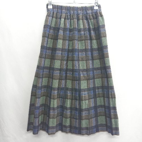 ◇ ⊇ JUNOAH ジュノア チェック柄 膝下丈 フレア スカート サイズL ブルー系 レディース E