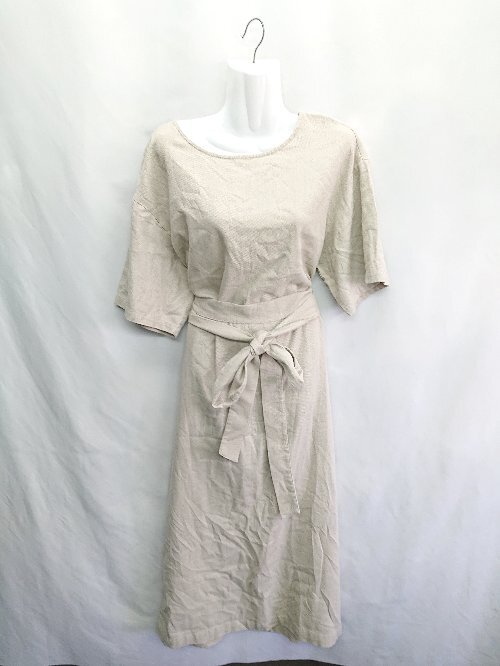 ◇ ⊂ koe コエ コットン素材 リネン素材 半袖 マキシ ワンピース サイズL ベージュ系 レディース E