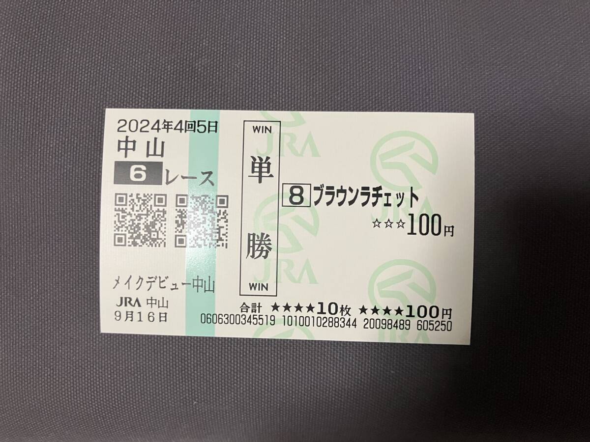 2024年度メイクデビュー中山(9/16)現地単勝馬券ブラウンラチェット(的中)