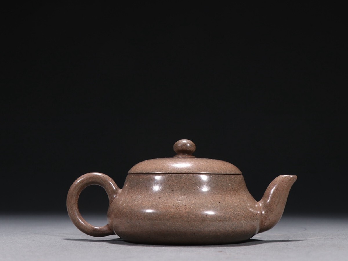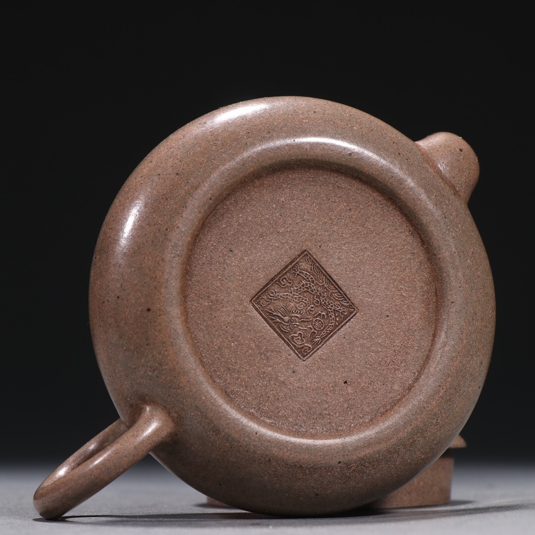 清時代 紫砂彫 水磨君徳老紫砂茶壺 木平【仁】中国陶磁器 急須 茶壷 茶道具 置物 蔵出 骨董