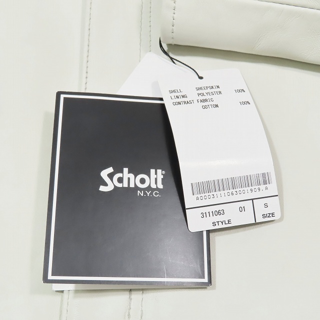 未使用品 ショット SCHOTT SHEEP CLASSIC RACER JACKET シングルライダース ジャケット ブルゾン ジップアップ S 白系 アイボリー 3111063/3 メンズ