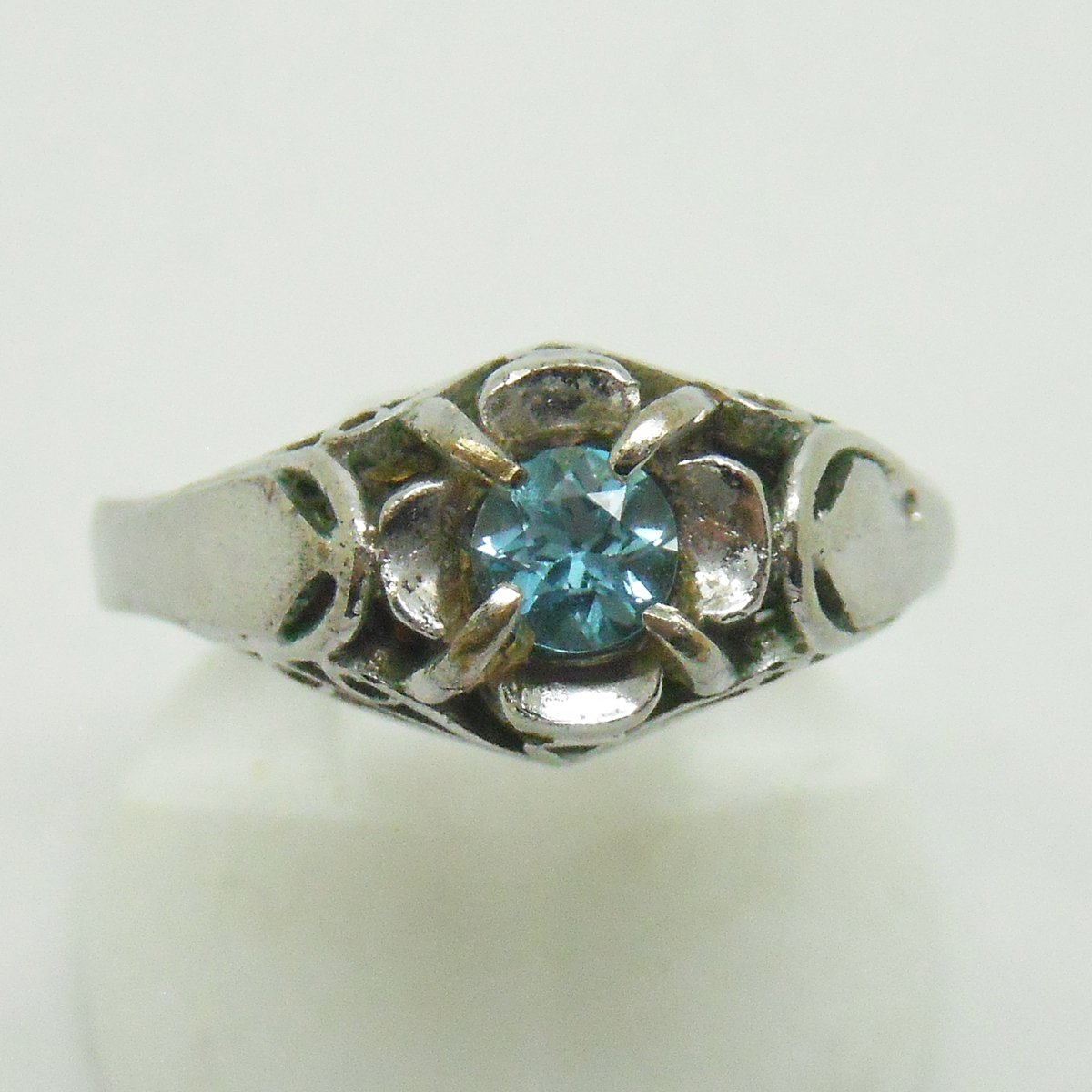 昭和アンティークなブルートパーズ【黄玉】リング♪金種不明