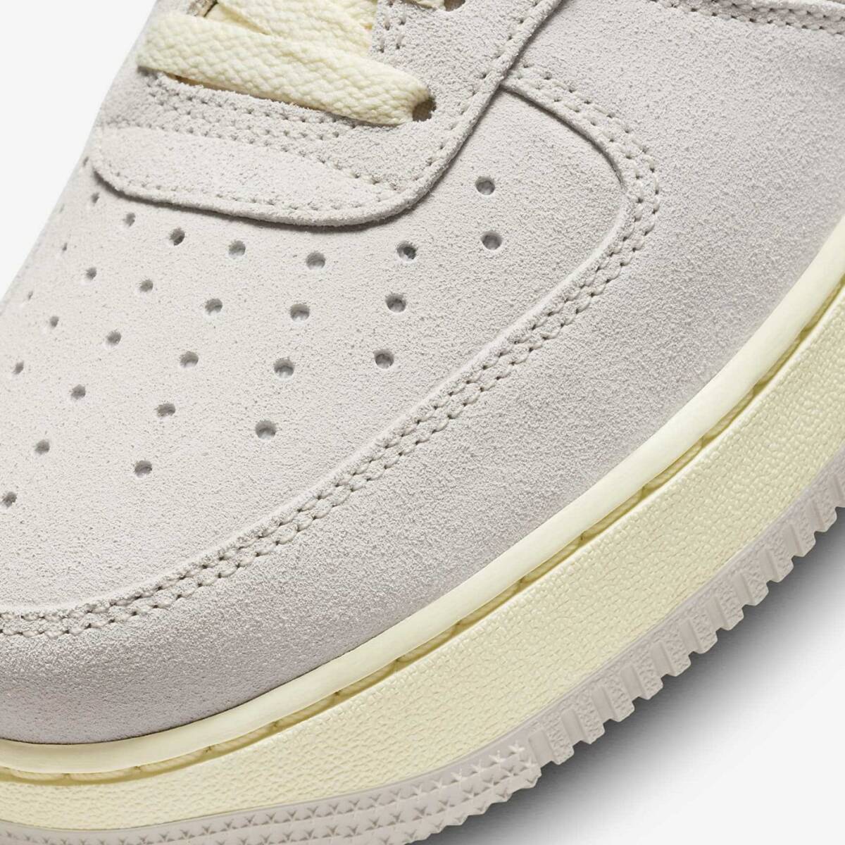 アッパーはあえて毛羽立ちのあるスウェードを使い、スウッシュとヒールタブはセイルカラーのレザー、カット断面を