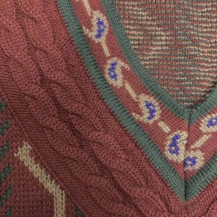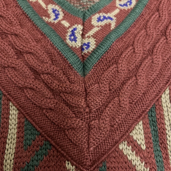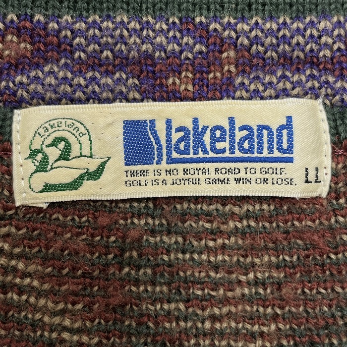 | 商品タイトル | レイクランド LAKELAND セーター Vネック ストライプ ケーブル 長袖 ウール×アクリル LL XL ブラウン 茶×緑×紺×ベージュ メンズ |
