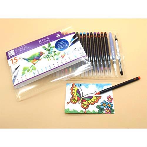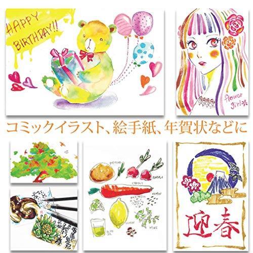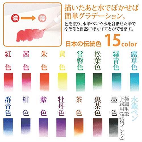 | ブランド:あかしや カラー:G.14色+2本セット(鮮やかな日本の伝統色) 「水彩毛筆」14色に「水筆ペン」「極細毛筆」がついた、思うままに水彩を楽しめるセット! 水性染料インクが再現する美しい日本の伝統色。 「彩」は描き味に色彩にこだわったカラー筆ペンです。毛筆のタッチを活かして、大胆に繊細に描くことはもちろん、水を穂先に含ませたり、紙をあらかじめ湿らせることで、やわらかな濃淡も自在に表現できます。混色して自由に色をつくることもできます。 彩があれば、そこがアトリエ。 ... 【シリーズ】水彩毛筆「彩」 【特長】発色のよい水性染料インクが再現する、美しい日本の伝統色の本格毛筆の筆ペンで手軽に水彩が楽しめるセット 【内容色】紅色、茜色、朱色、黄色、常磐色、松葉色、緑青色、露草色、群青色、紺色、紫色、牡丹色、茶色、焦茶色 【仕様】便利な「水筆ペン」と下絵描き用の「極細筆ペン」が付属 【用途】水彩画、塗り絵、イラスト、絵手紙、年賀状など | |||