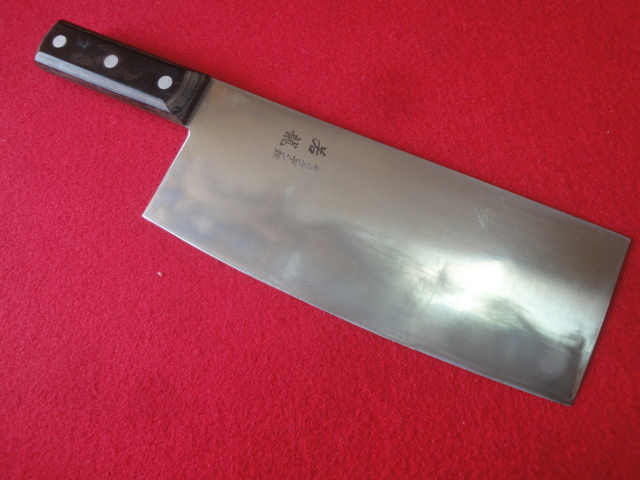 【若龍】中華包丁 ※モリブデン鋼 刃渡21.9㎝ 全長33.2㎝ 峰厚2.6mm ※両刃 中古品 全国一律送料1200円