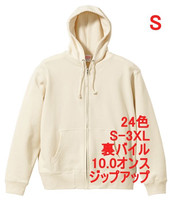 パーカー S ナチュラル ジップアップ スウェット 裏パイル 10オンス フルジップ 無地 フーディー パーカ 定番 メンズ A637 アイボリー 5213