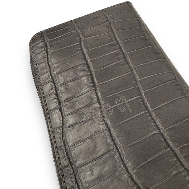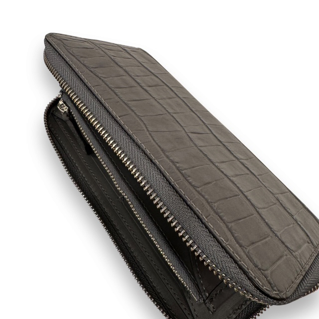 ■新品未使用/FELISI/フェリージ/クロコ型押しラウンドジップ・ロングウォレット/グレー/正規代理店商品■(長財布 マルチウォレット)