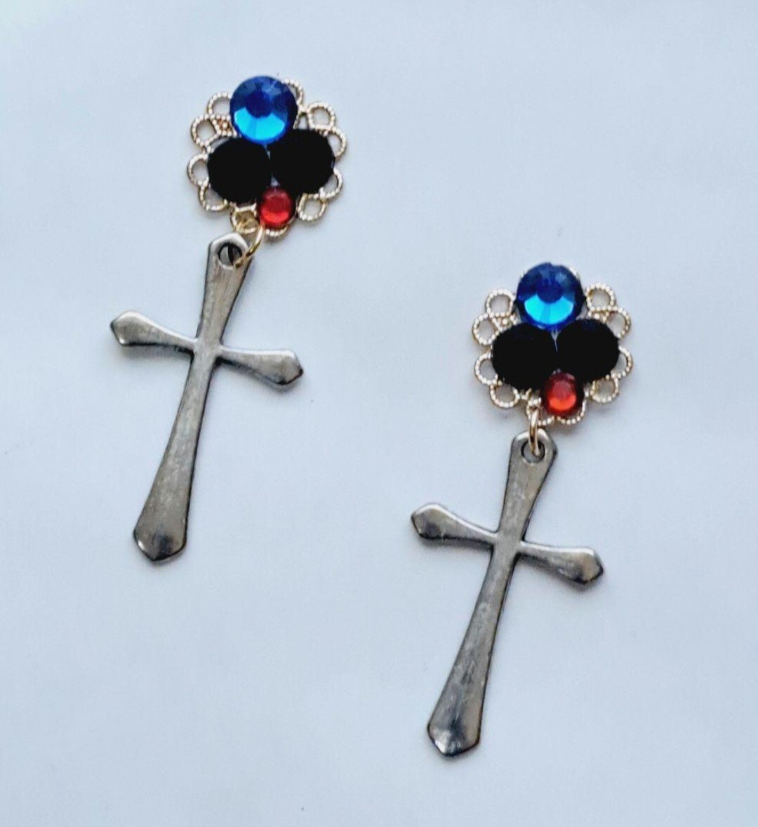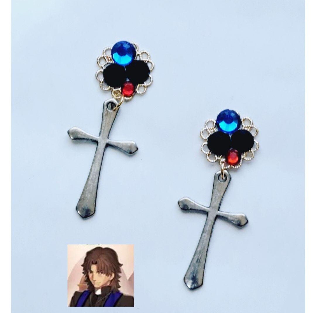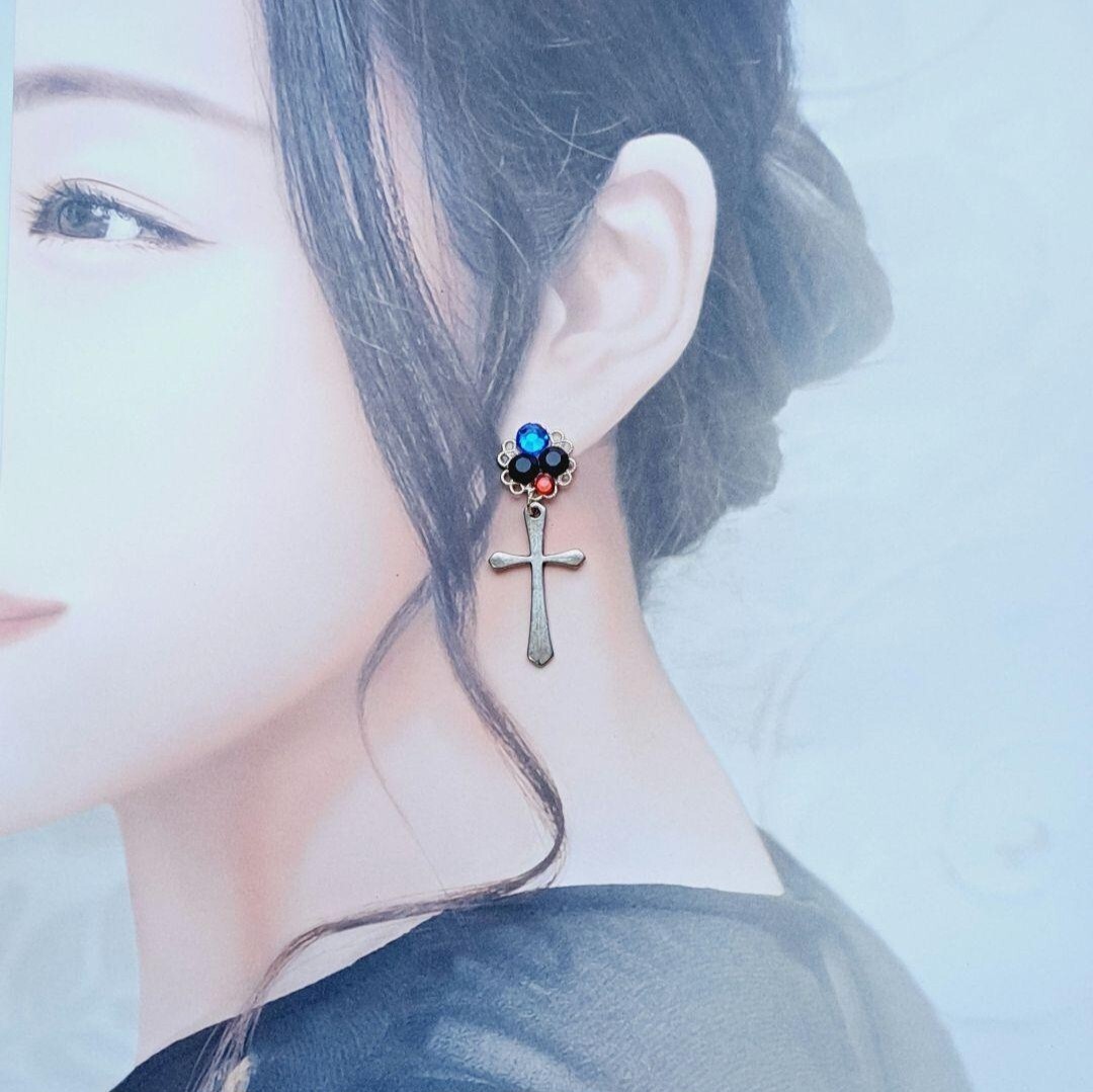 商品名 :十字架チャームとラインストーンの耳飾り 零れ氾く暗黒心臓