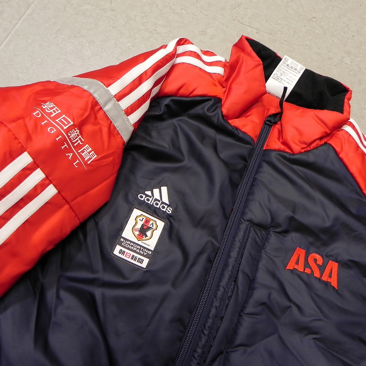 美品 大きいサイズ XO☆JFA☆サッカー☆adidas☆アディダス☆ASA☆朝日新聞☆中綿入り 防寒 ジャケット☆ウィンドブレーカー 即決☆a