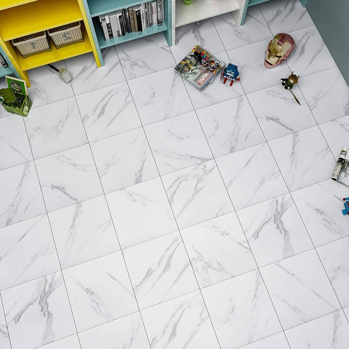 大理石 フロア タイル 約6畳分 床 リメイク シート 120枚入り トイレ 浴室 玄関 防水 フローリング 貼ってはがせる 接着剤不要 大理石柄